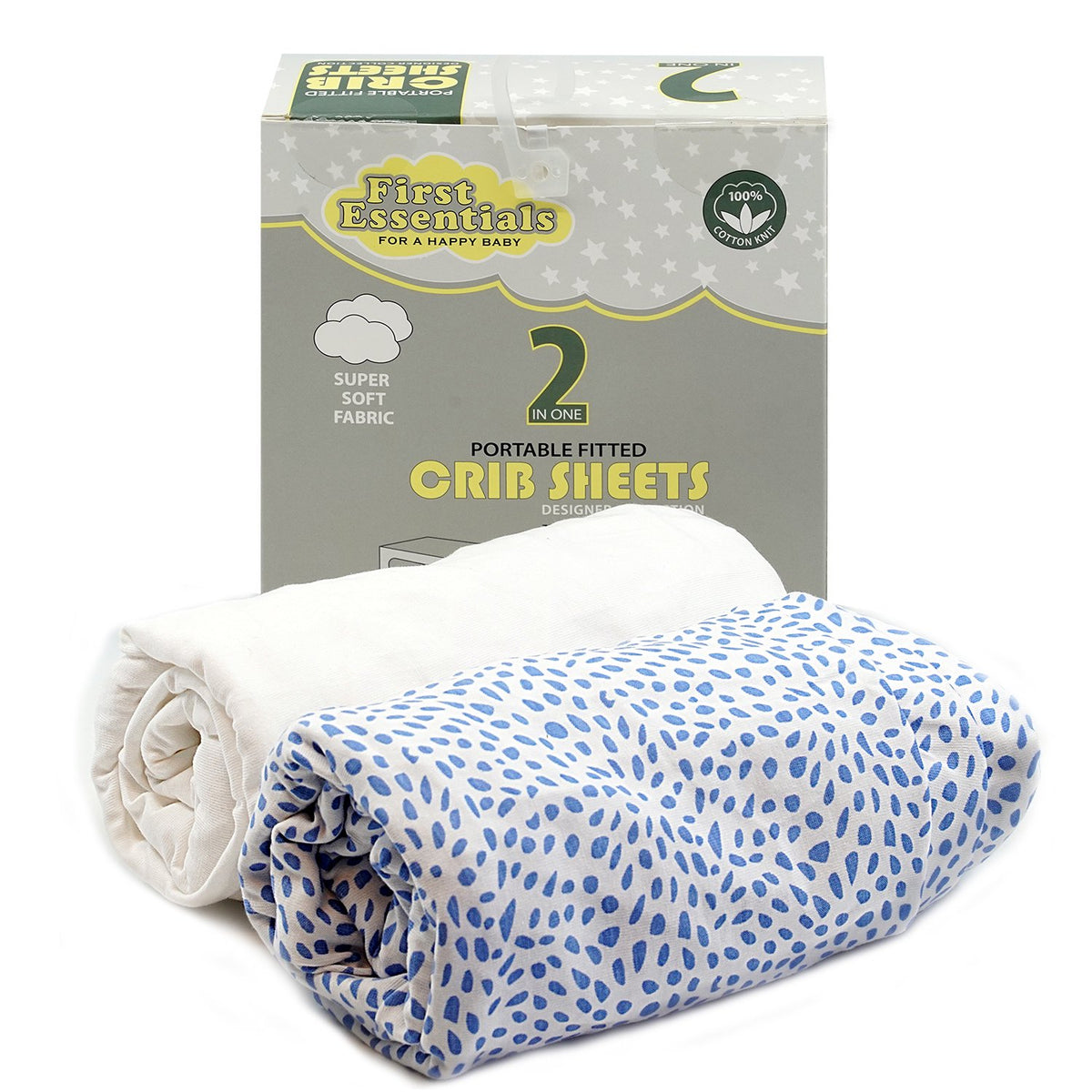 PORTABLE CRIB SHEET BLUE/WHITE 2PCK