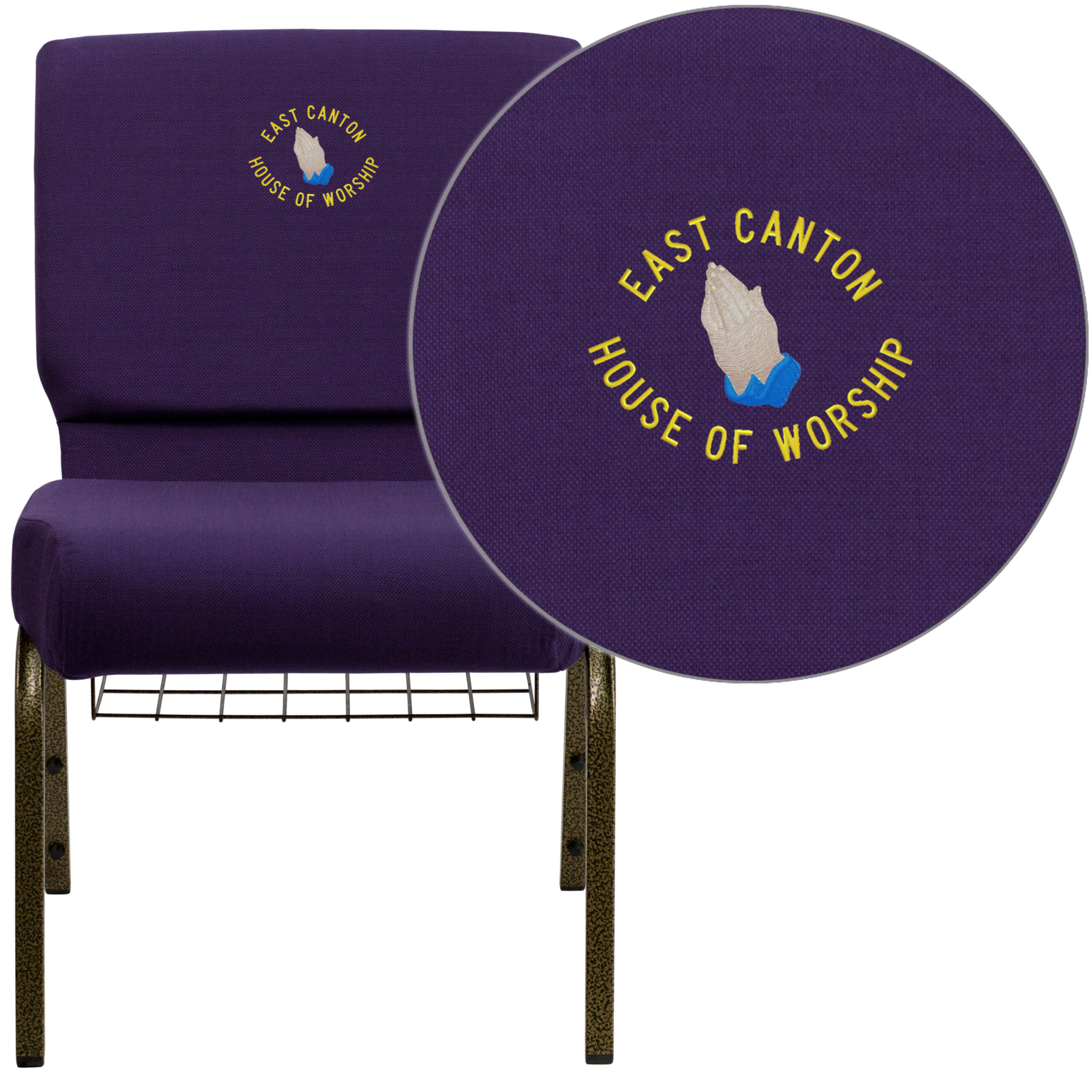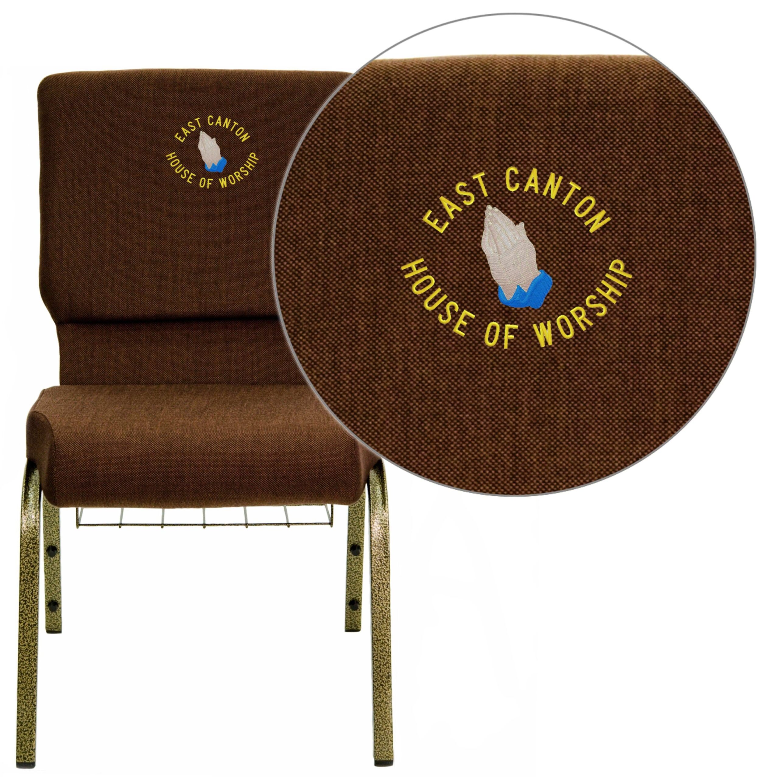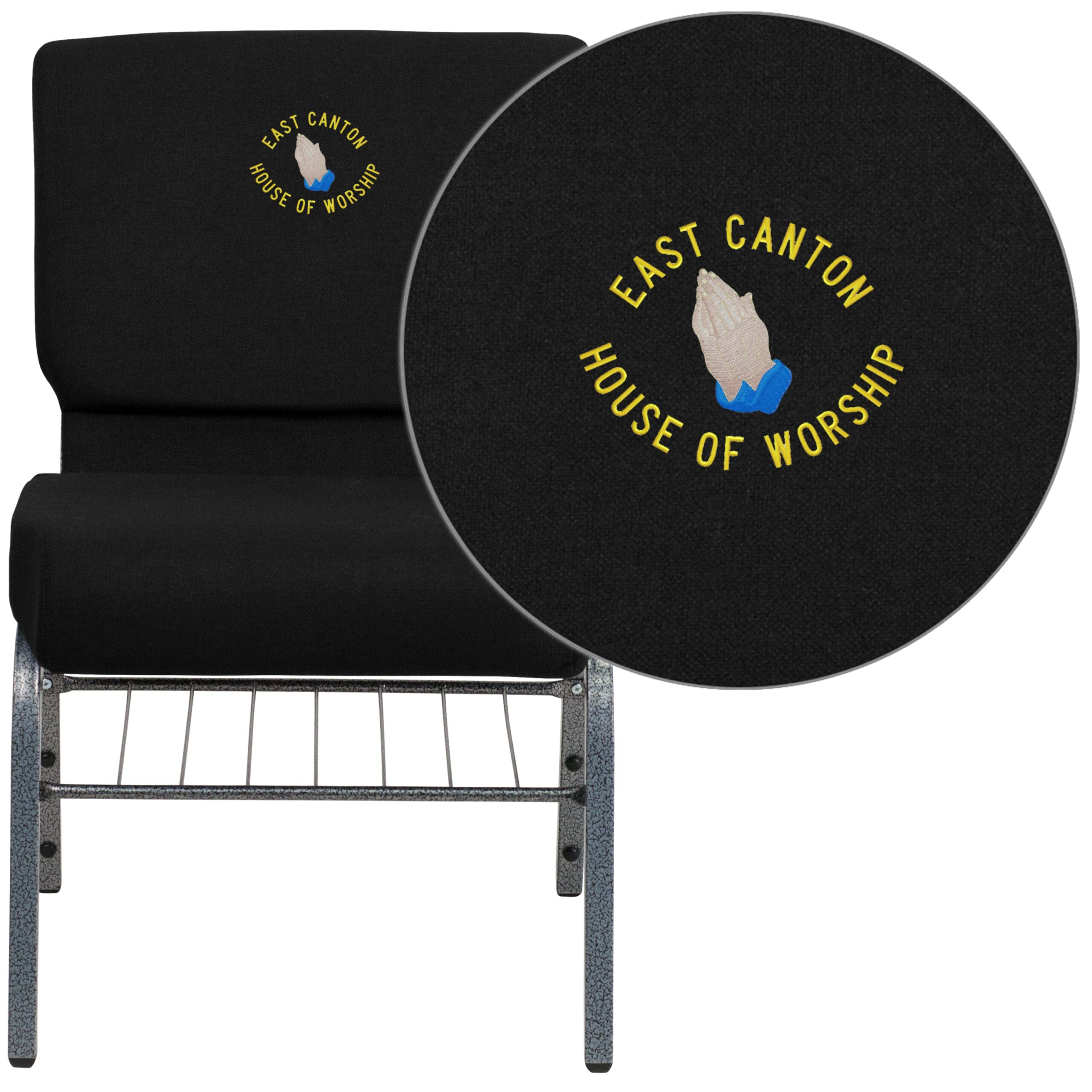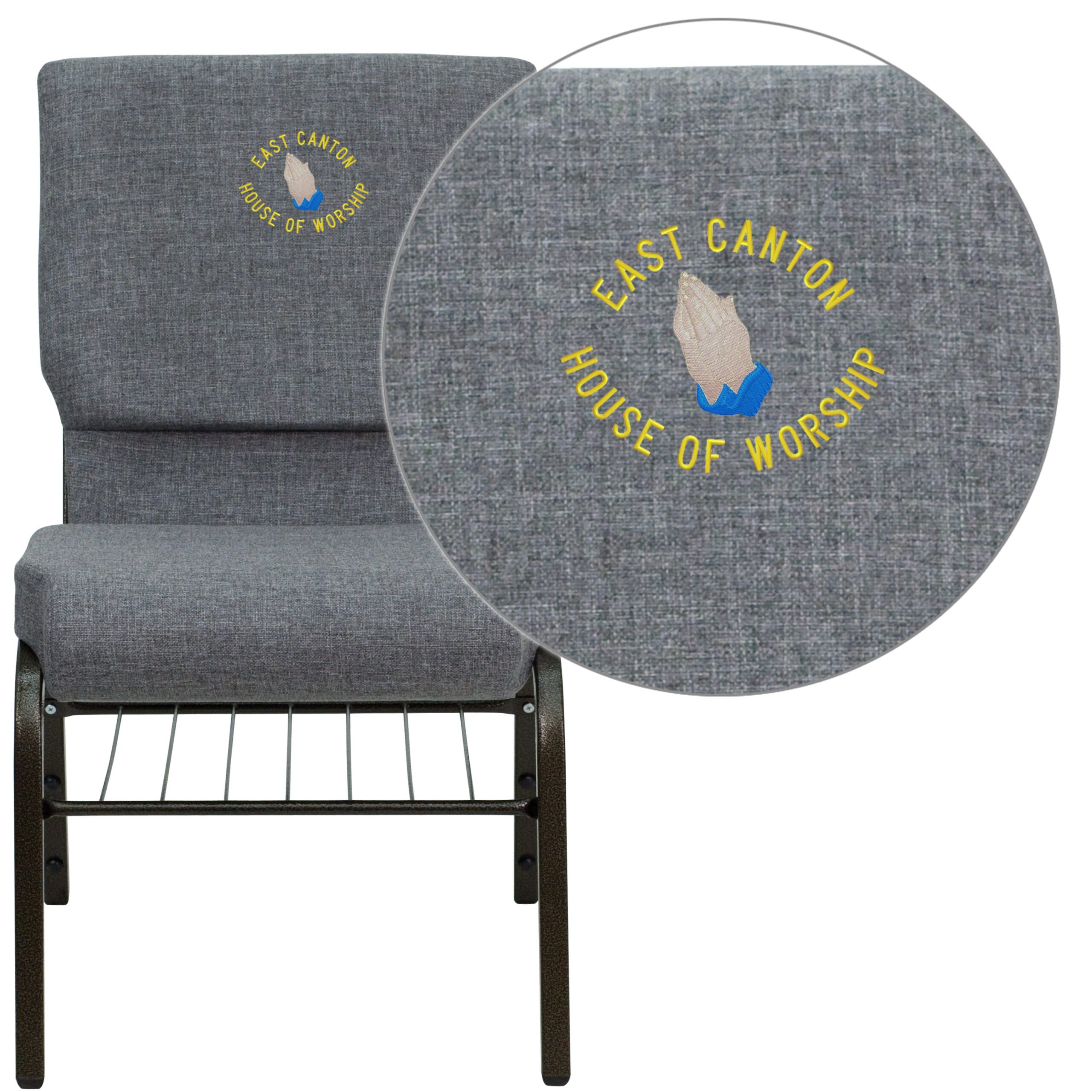 Embroidered HERCULES Series 18.5”W Church Chair with Book Rack