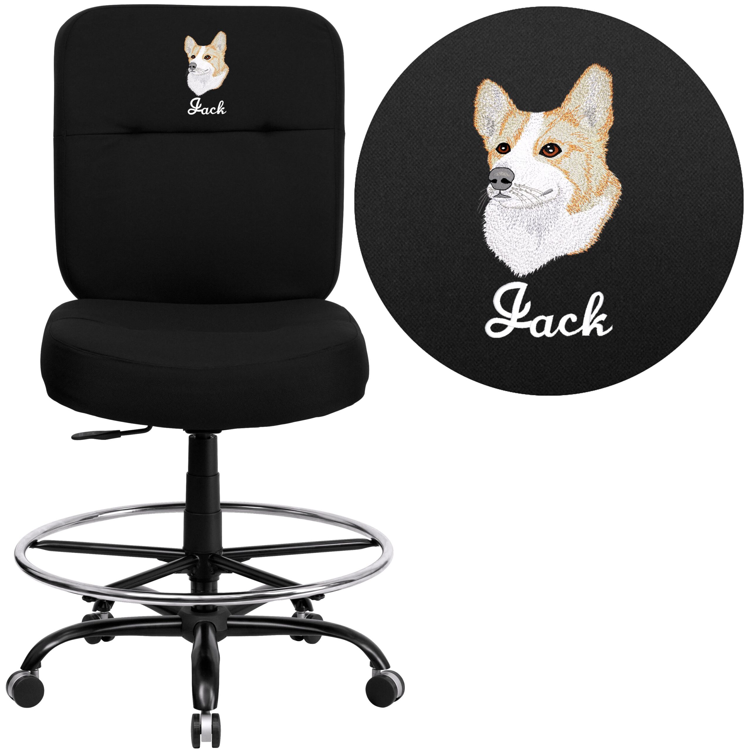 Embroidered HERCULES Series Big /u0026 Tall 400 lb. Rated Ergonomic Drafting Chair with Rectangular Back