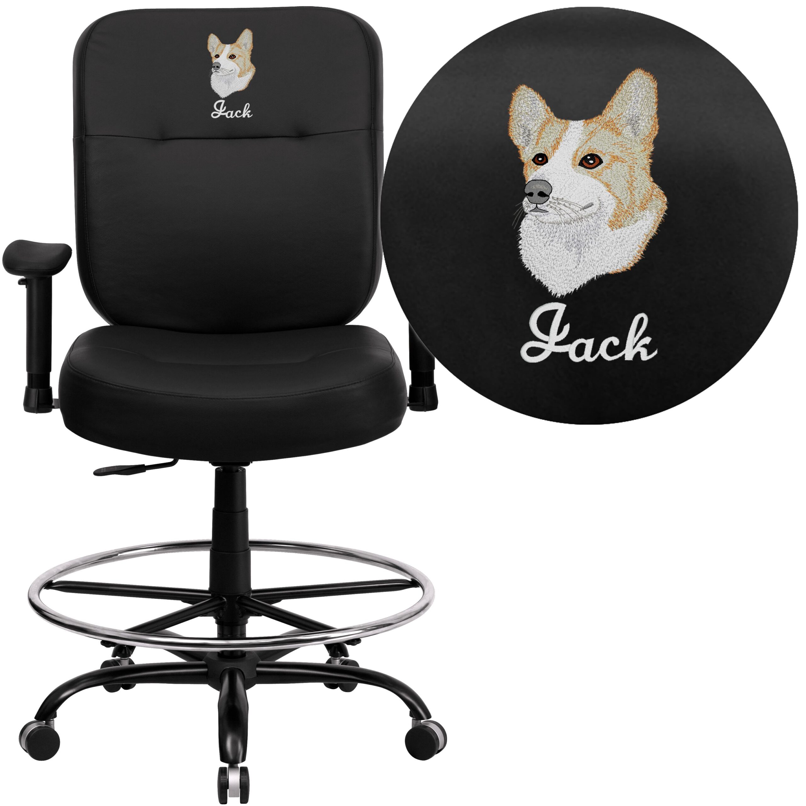 Embroidered HERCULES Series Big /u0026 Tall 400 lb. Rated Ergonomic Drafting Chair with Rectangular Back and Adjustable Arms