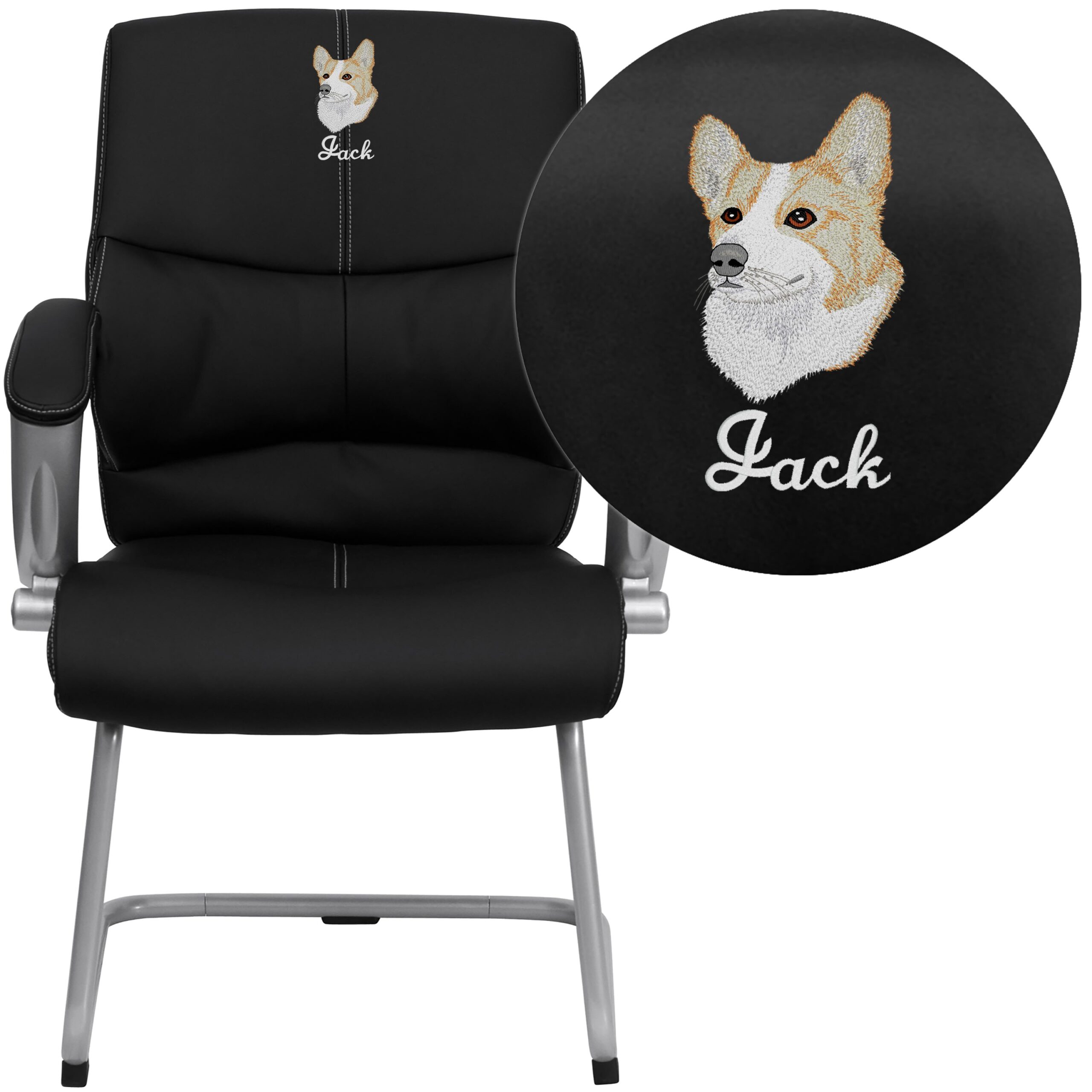 Embroidered LeatherSoft Executive Side Reception Chair with Mahogany Legs