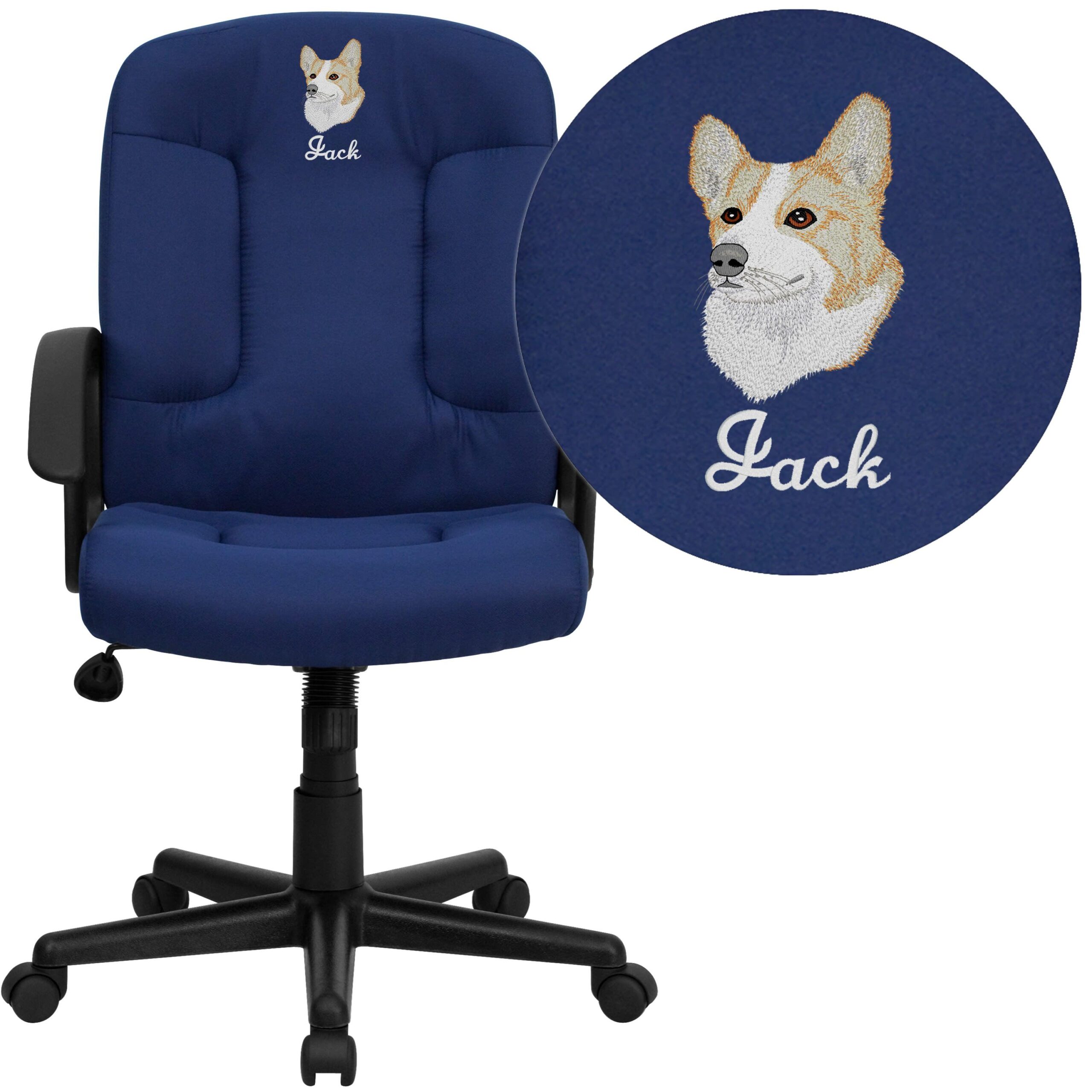 Embroidered Mid-Back Fabric Swivel Task Office Chair with Adjustable Arms