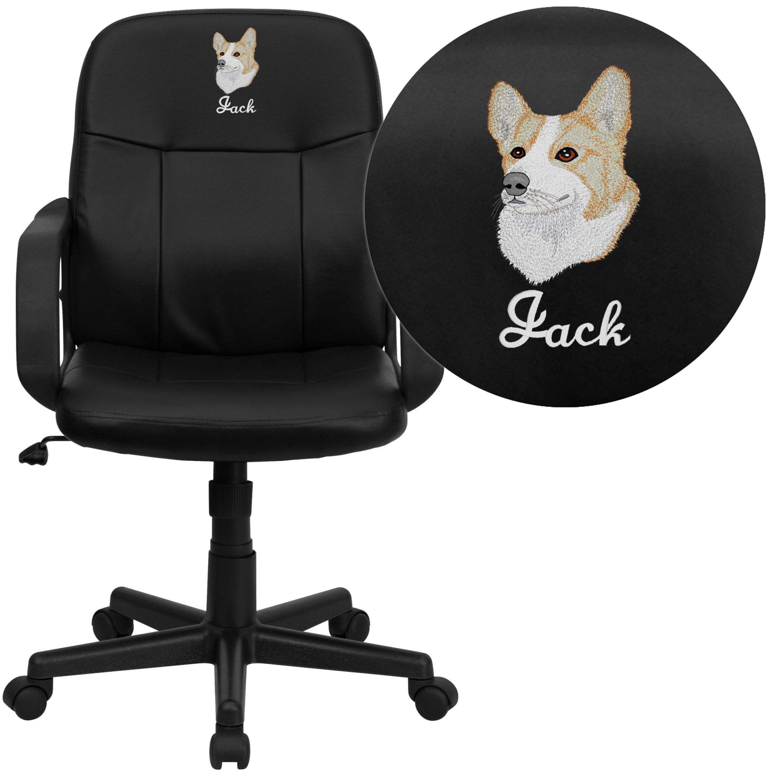 Embroidered Mid-Back LeatherSoft Contemporary Swivel Manager’s Office Chair with Arms