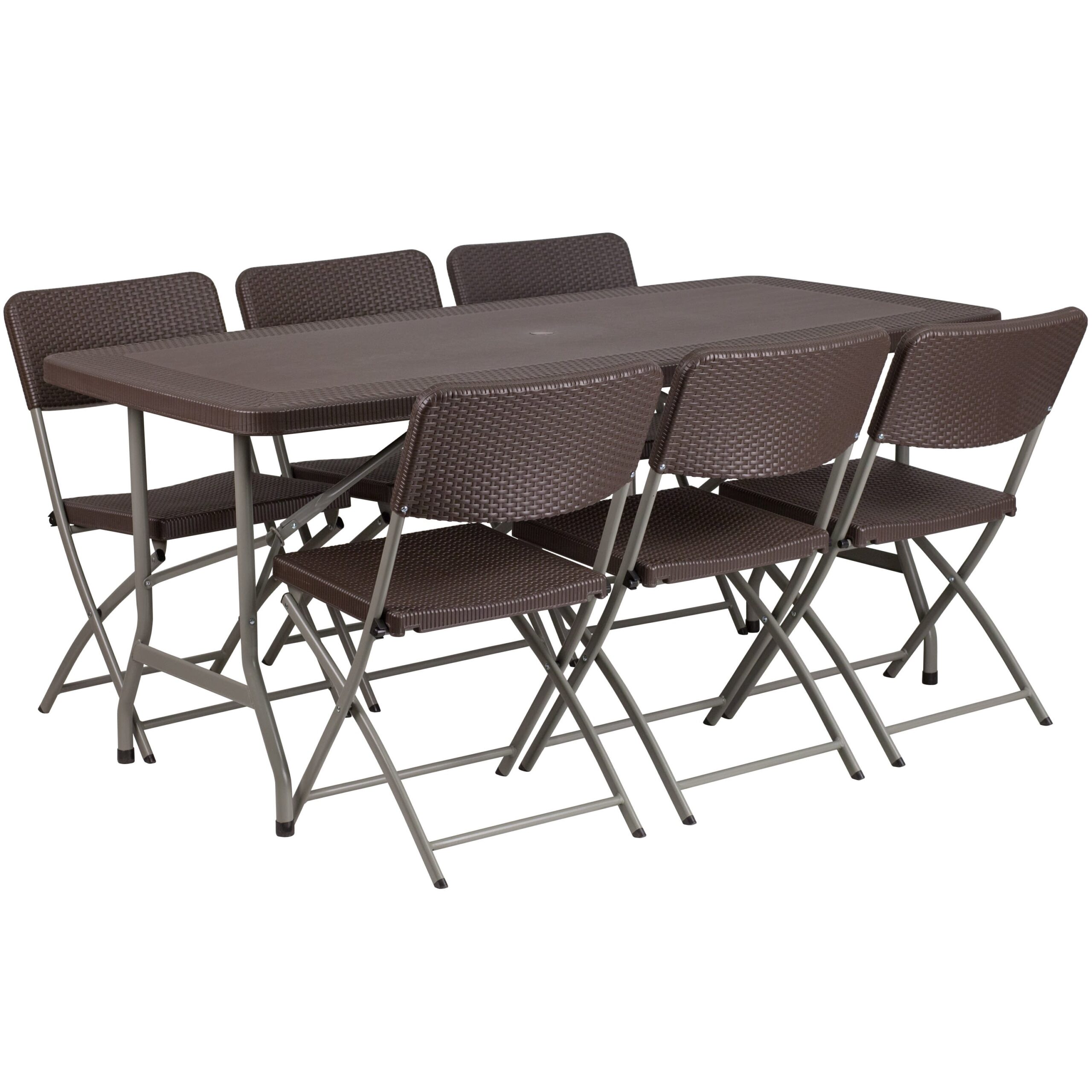 5.62-Foot Rattan Indoor-Outdoor Plastic Folding Table Set with 6 Chairs