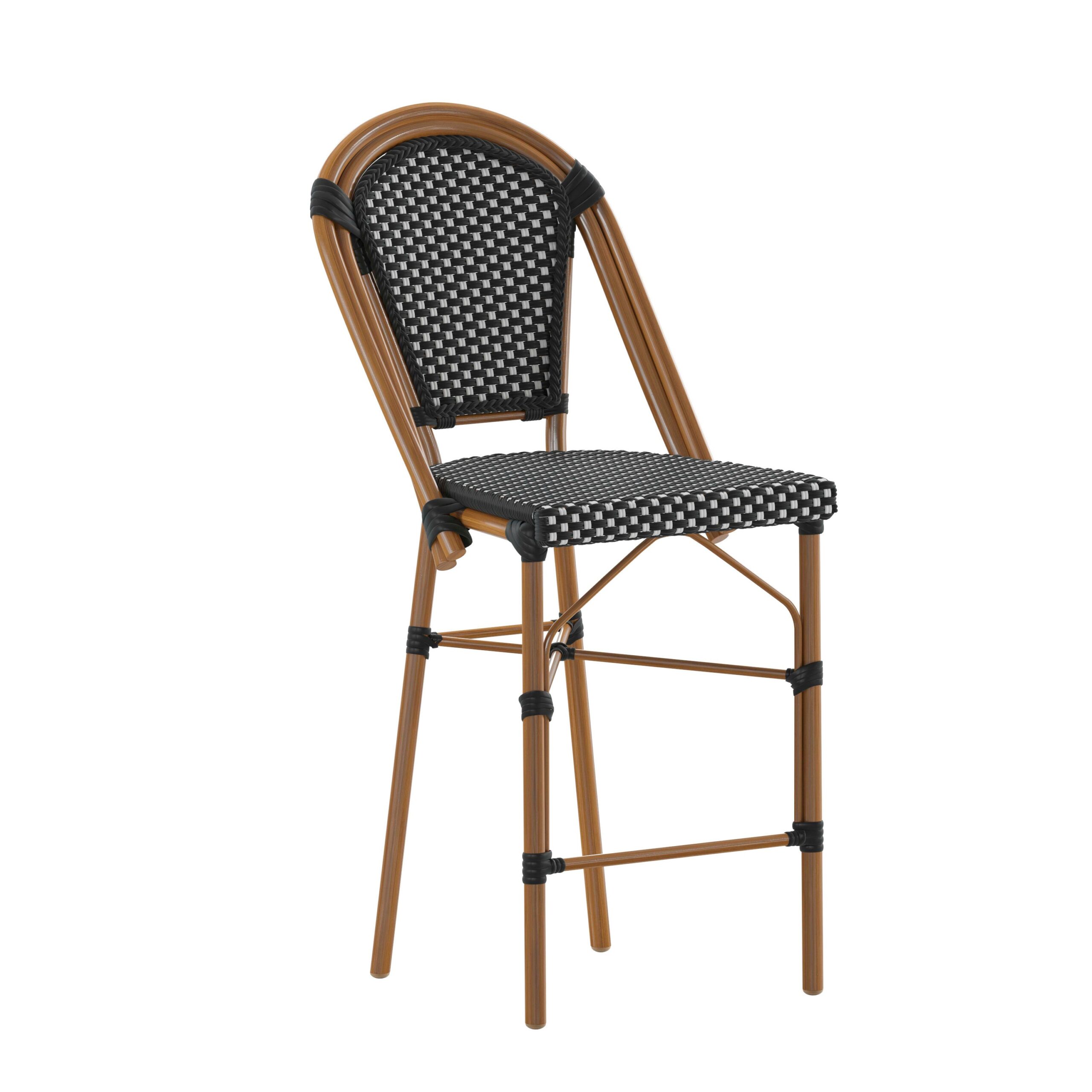 Bordeaux Indoor/Outdoor Commercial Bistro Stacking Chair, PE Rattan Back and Seat, Bamboo Print Aluminum Frame