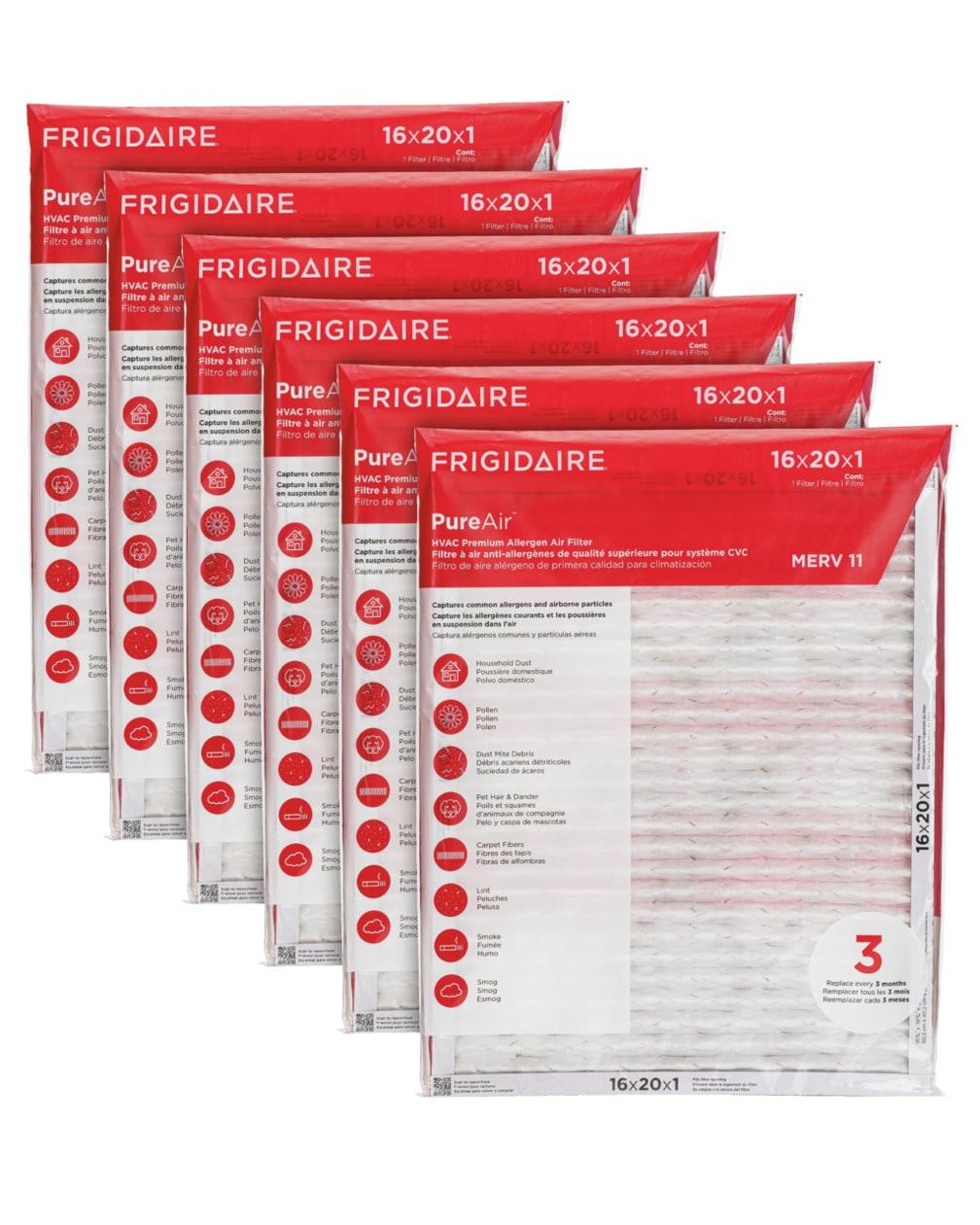FRIGIDAIRE HVAC1620116 Frigidaire PureAir(R) 16″ x 20″ x 1″ MERV 11 Premium Allergen Air Filter – 6 Pack