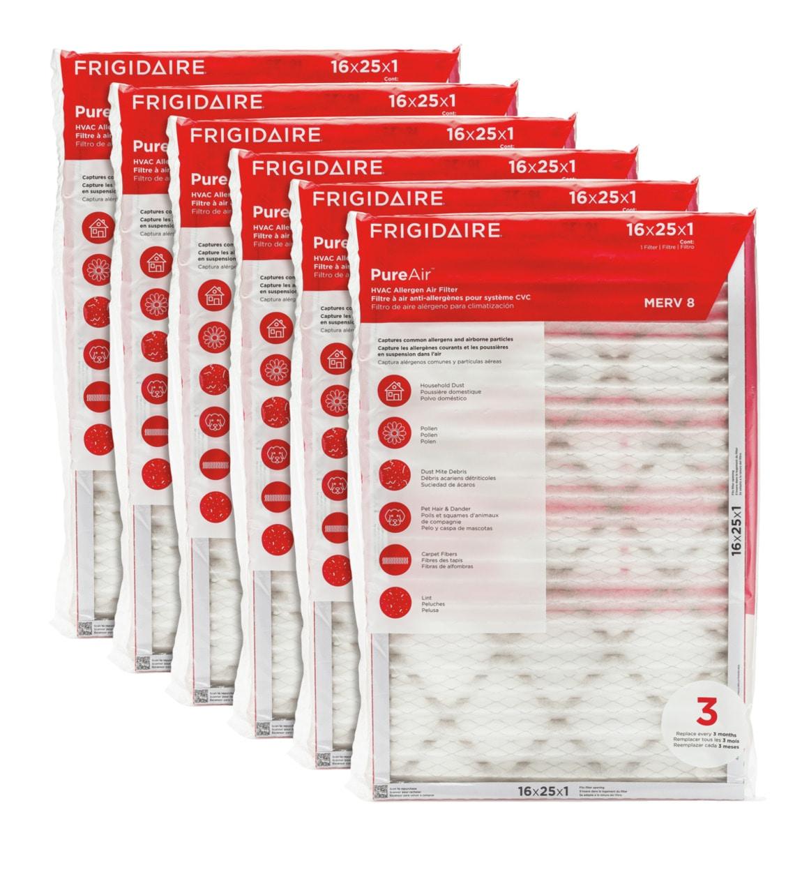 FRIGIDAIRE HVAC162586 Frigidaire PureAir(R) 16″ x 25″ x 1″ MERV 8 Allergen Air Filter – 6 Pack
