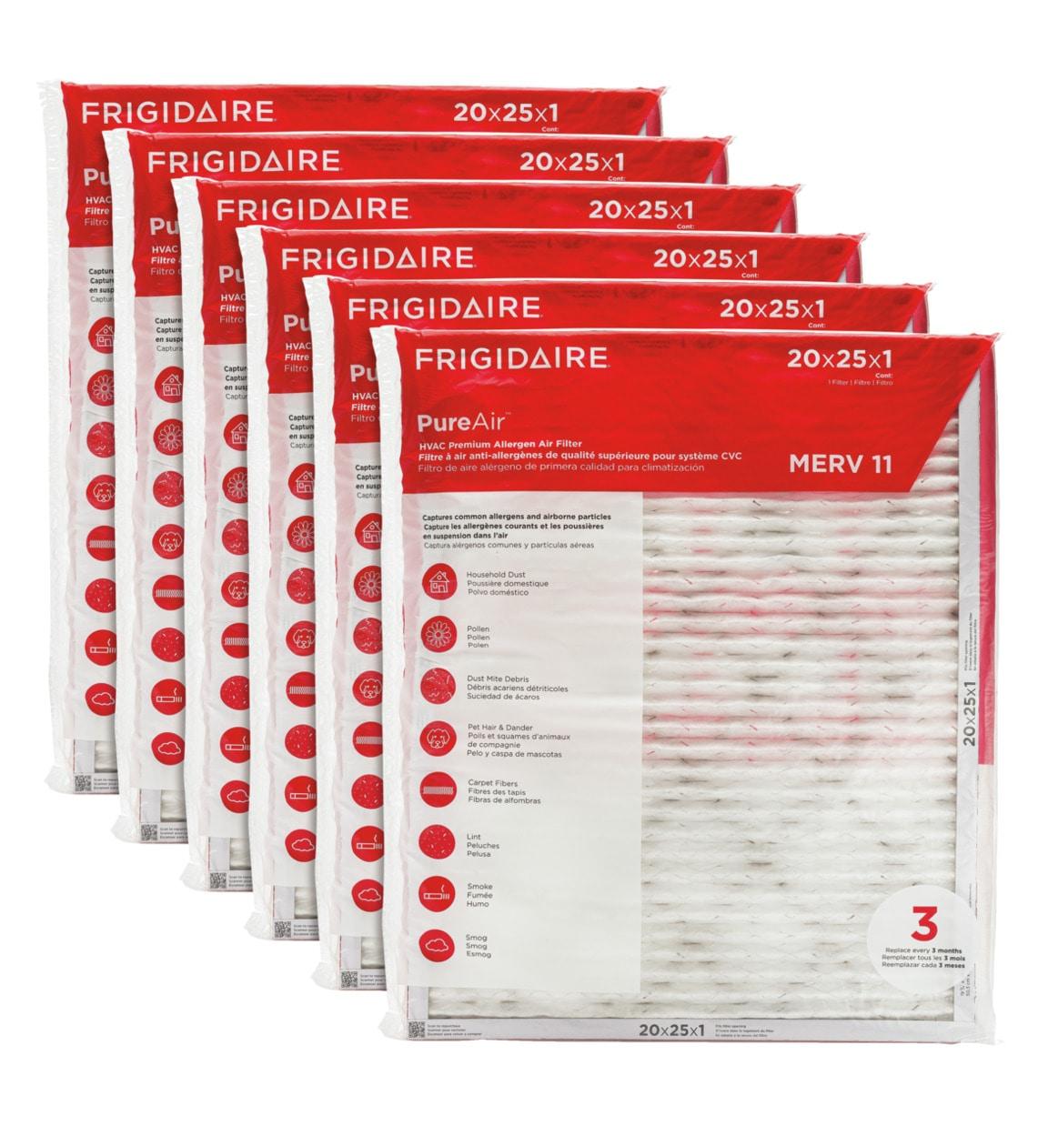 FRIGIDAIRE HVAC2025116 Frigidaire PureAir(R) 20″ x 25″ x 1″ MERV 11 Premium Allergen Air Filter – 6 Pack