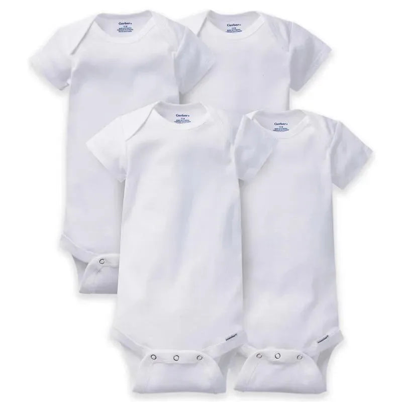 Gerber Onesies 4-Pack Short Sleeve Bodysuits, White – 12M