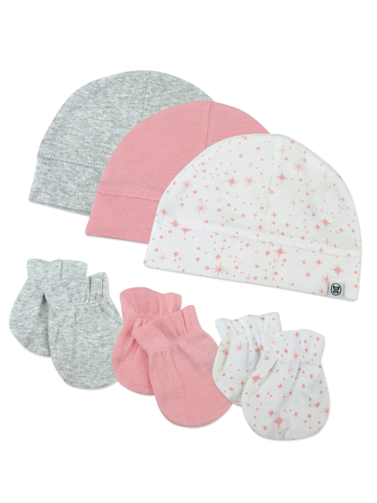 Honest Baby Clothing 6 Piece Organic Cotton Cap and Mitt Set, Twinkle Star Pink
