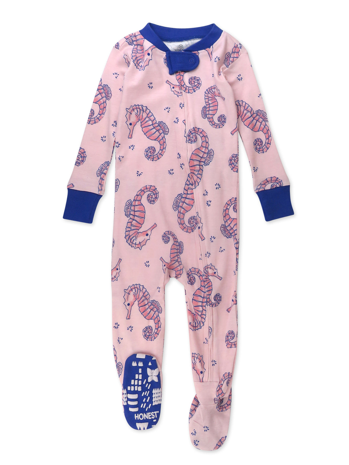 Honest Baby Clothing Organic Cotton Snug-Fit Footed Pajama,Sea Horse