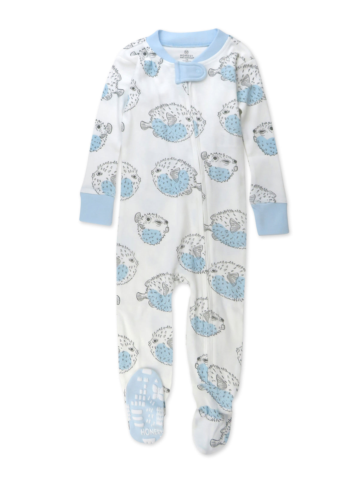 Honest Baby Clothing Organic Cotton Snug-Fit Footed Pajama,Blow Fish