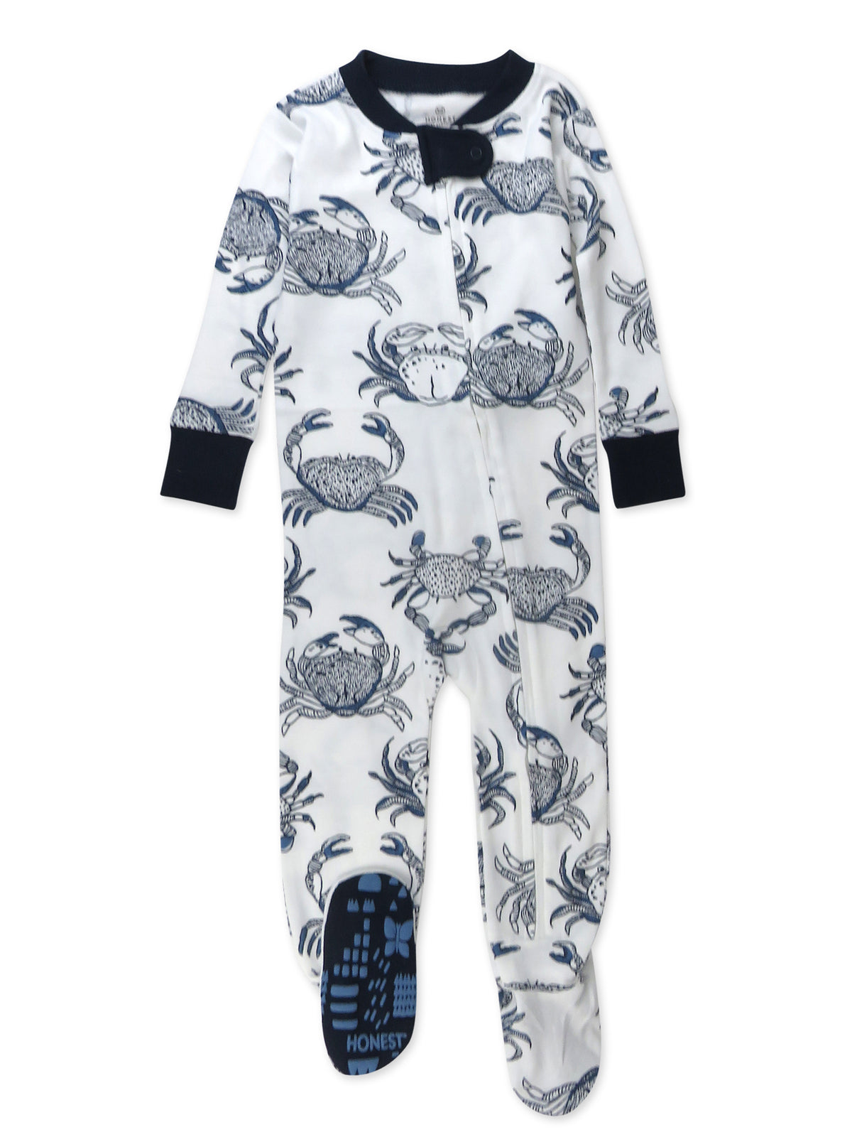 Honest Baby Clothing Organic Cotton Snug-Fit Footed Pajama, Crabs