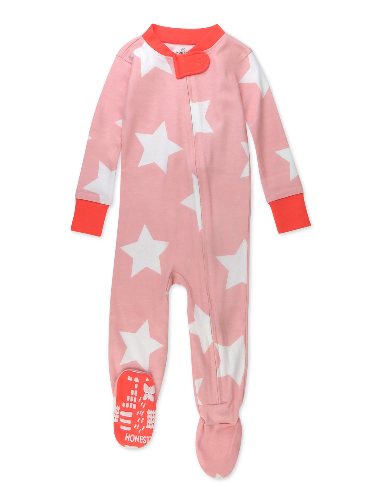 Honest Baby Clothing Organic Cotton Snug-Fit Footed Pajama, Jumbo Star Pink