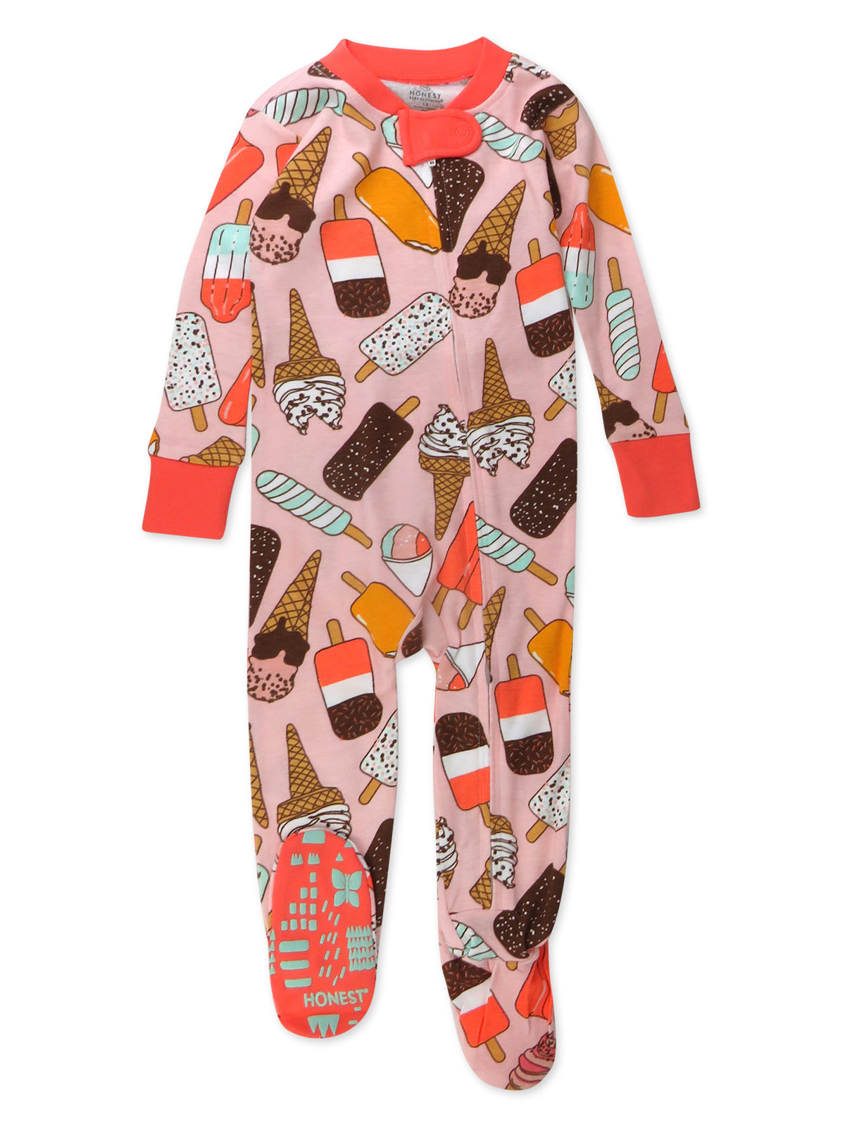 Honest Baby Clothing Organic Cotton Snug-Fit Footed Pajama, Ice Cream Rose