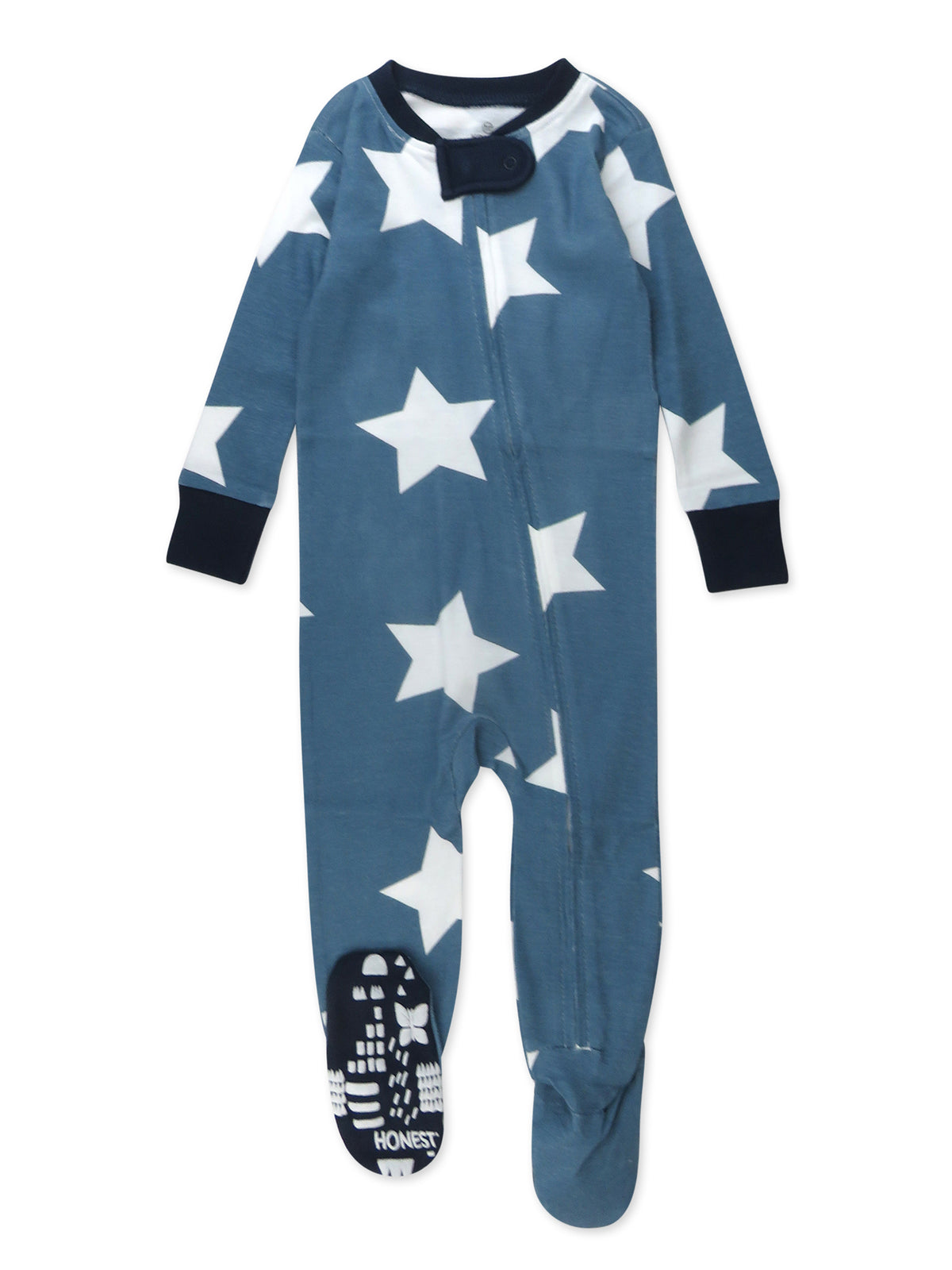 Honest Baby Clothing Organic Cotton Snug-Fit Footed Pajama Jumbo Star Blue