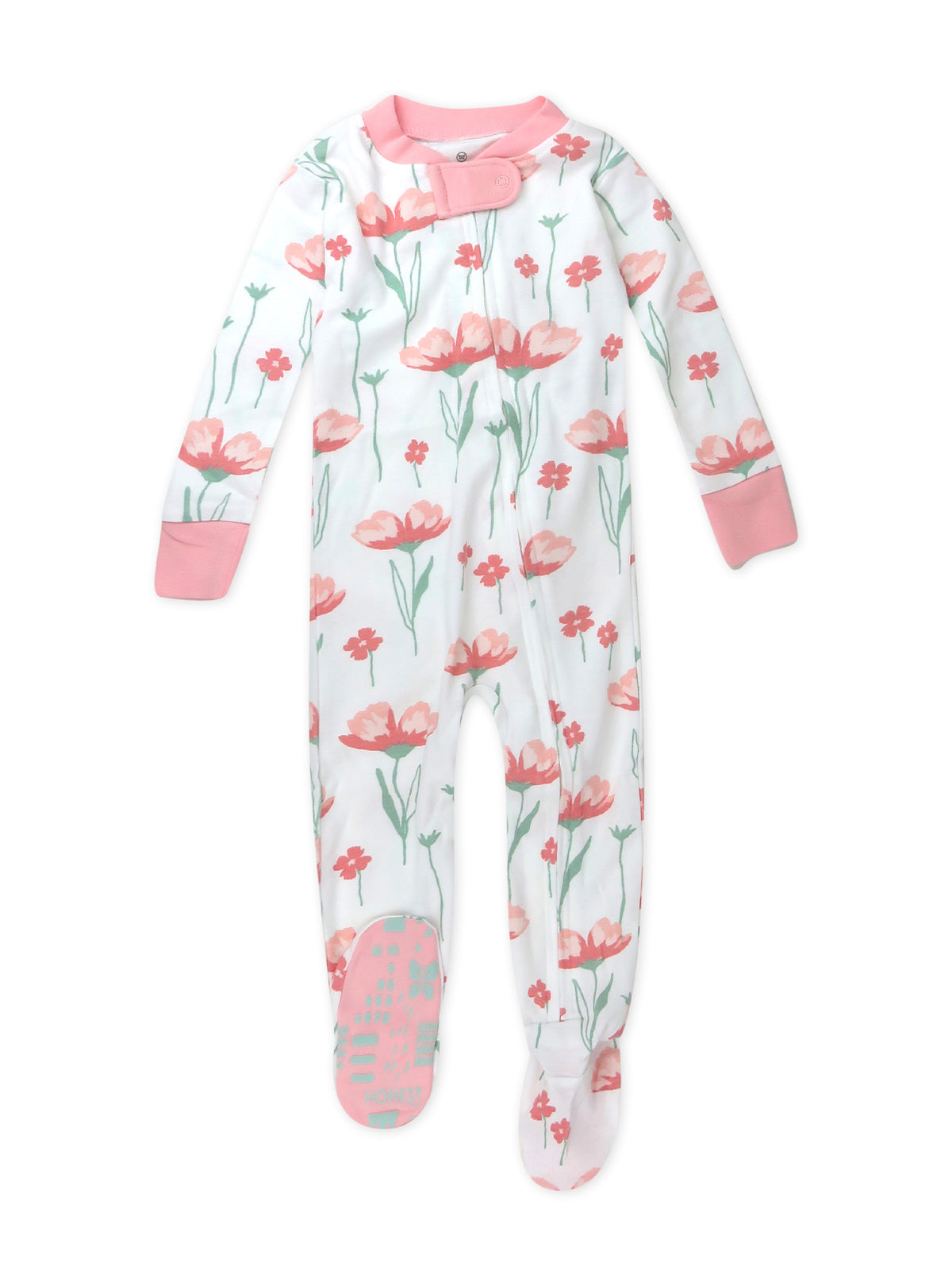 Honest Baby Clothing Organic Cotton Strawberry Pink Floral Snug Fit Footed Pajamas