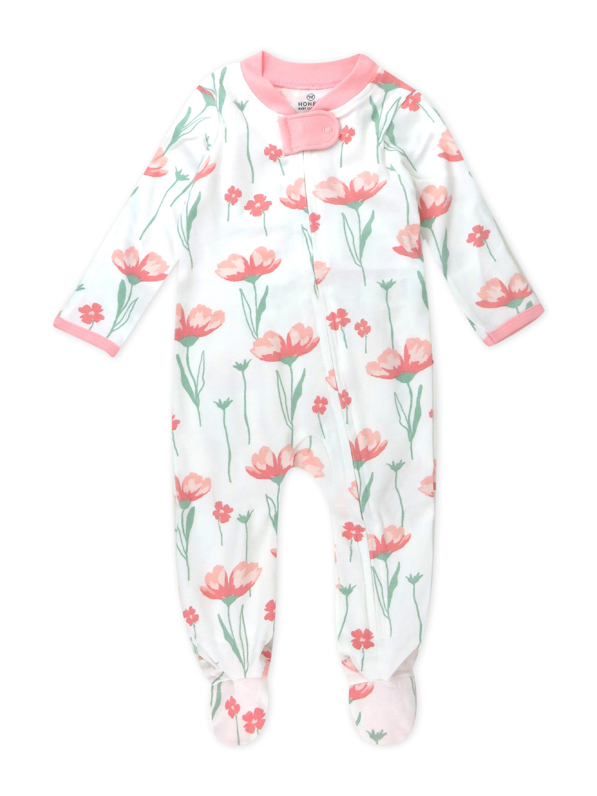 Honest Baby Clothing Organic Cotton Strawberry Pink Floral Sleep and Play