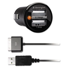 Kensington® PowerBolt Duo Car Charger With 30-Pin/USB for Apple Devices KMW33497