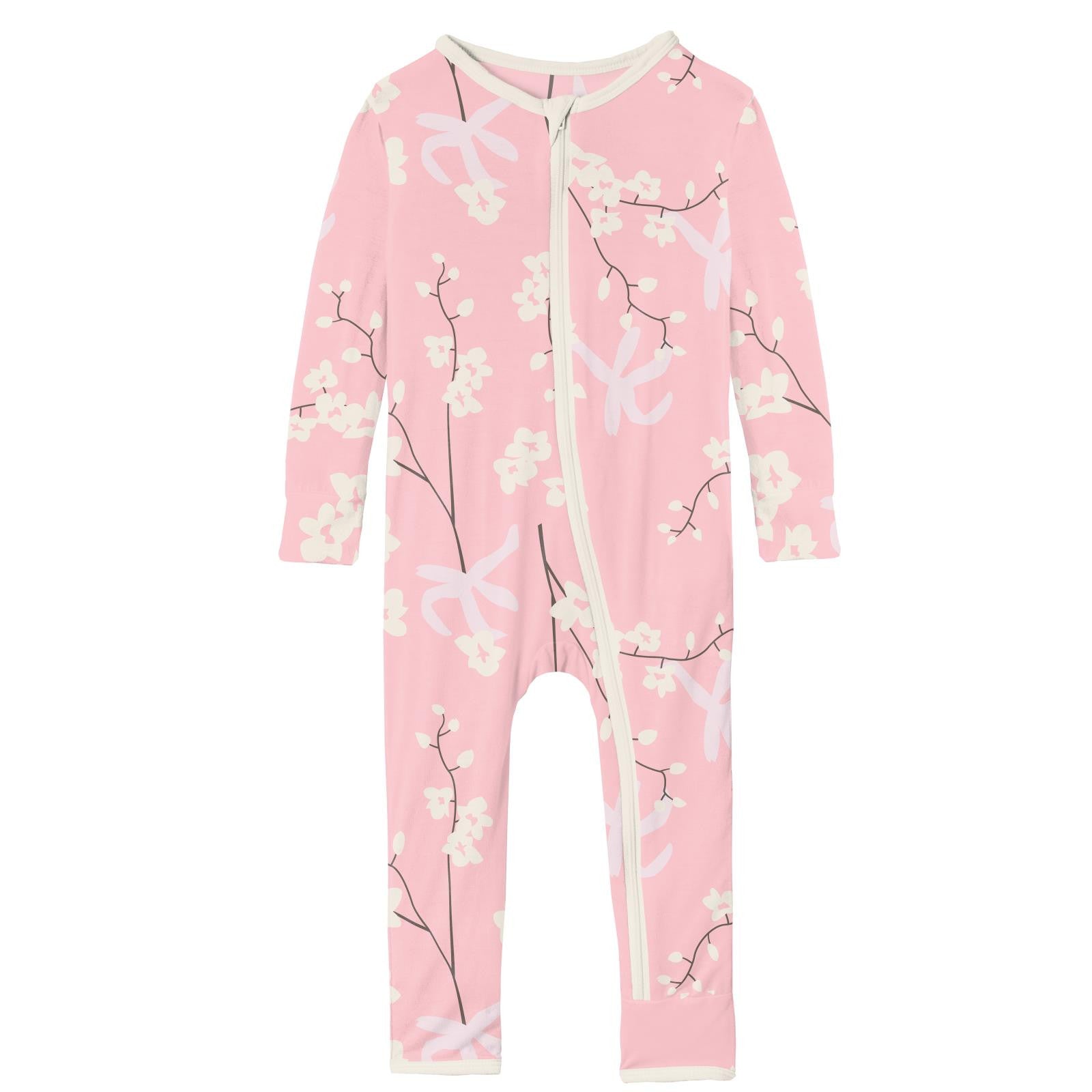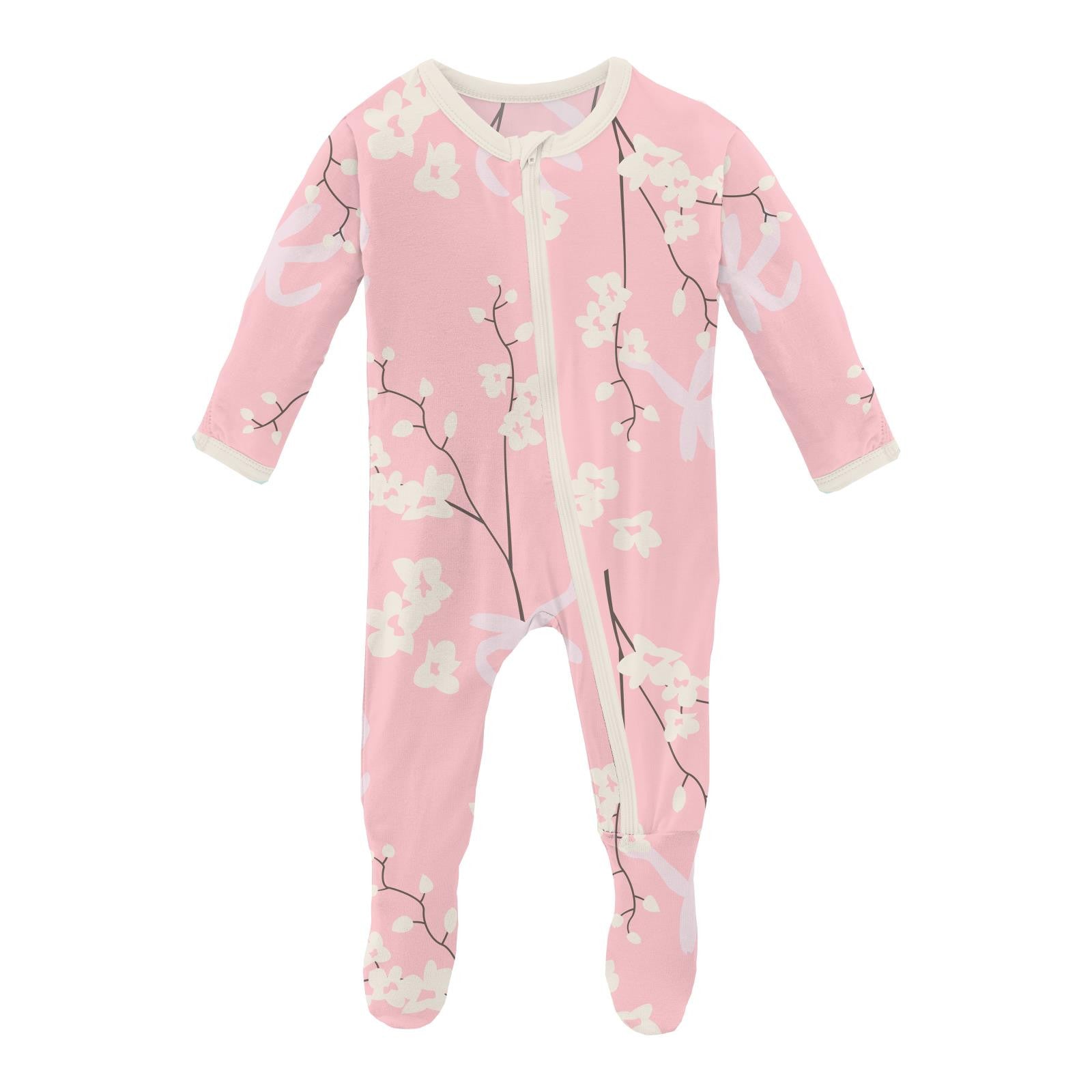 KICKEE PANTS PRINT FOOTIE WITH ZIPPER – LOTUS ORCHID PRINT