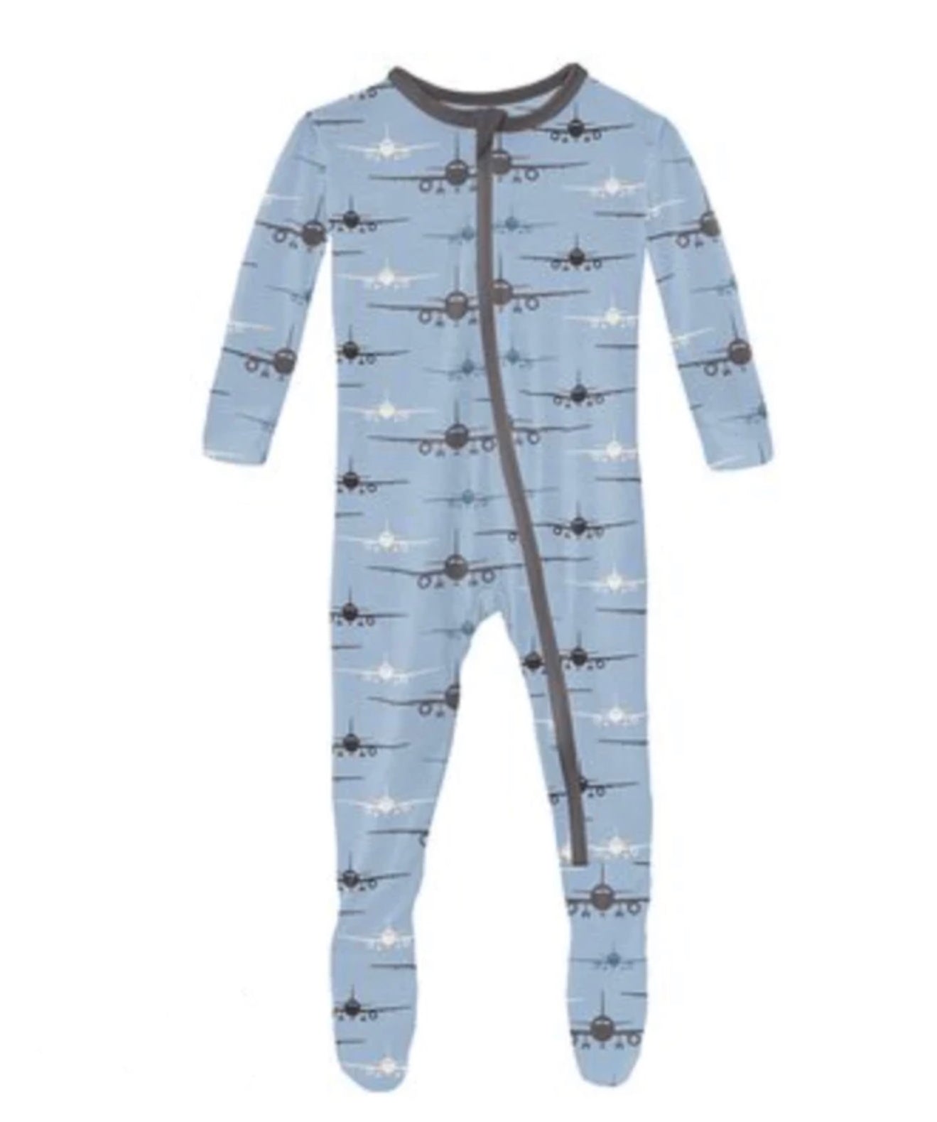 KICKEE PANTS PRINT FOOTIE WITH ZIPPER – POND AIRPLANES