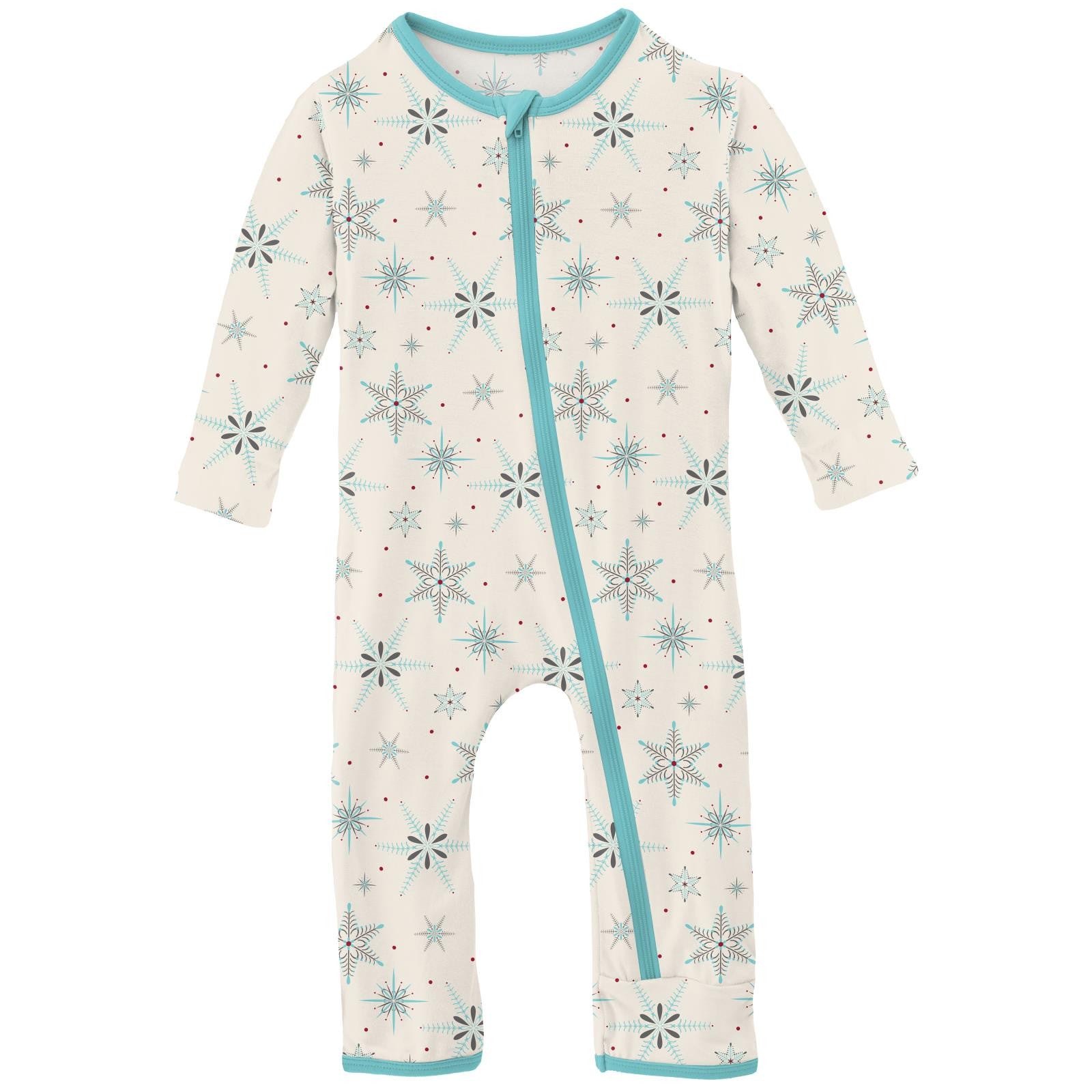 NATURAL SNOWFLAKES PRINT COVERALL WITH ZIPPER