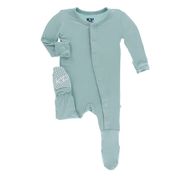 KICKEE PANTS SOLID FOOTIE WITH ZIPPER JADE