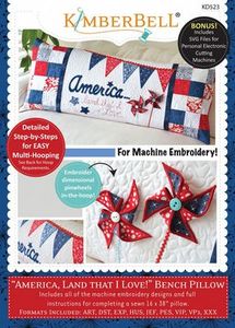 KimberBell KD523 America, Land That I Love Bench Pillow (ME) Embroidery Designs CD, Finished size: Approximately 16x38in