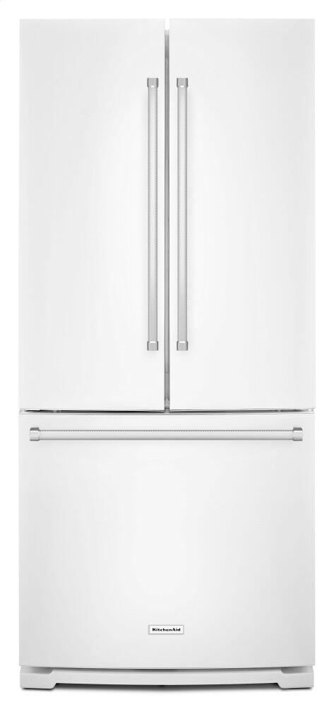 KITCHENAID KRFF300EWH 20 cu. Ft. 30-Inch Width Standard Depth French Door Refrigerator with Interior Dispense – White