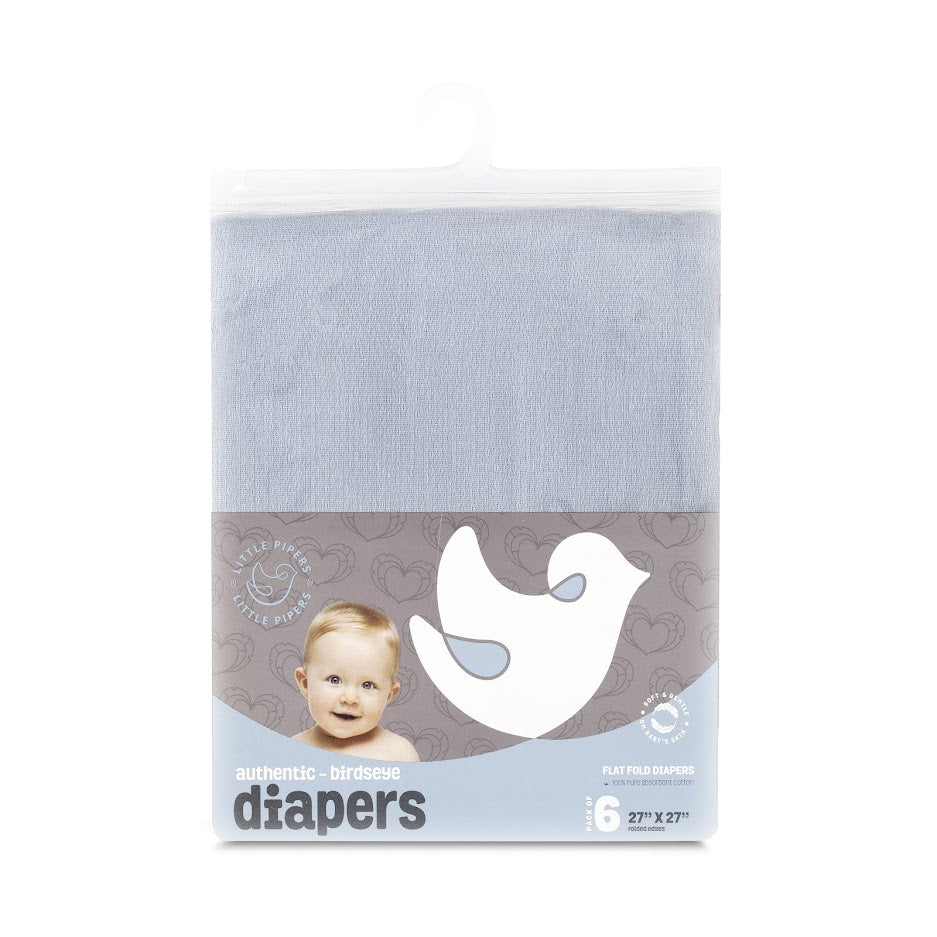 LITTLE PIPERS BIRDEYE FLATFOLD DIAPERS – 6 PACK – CHAMBRAY
