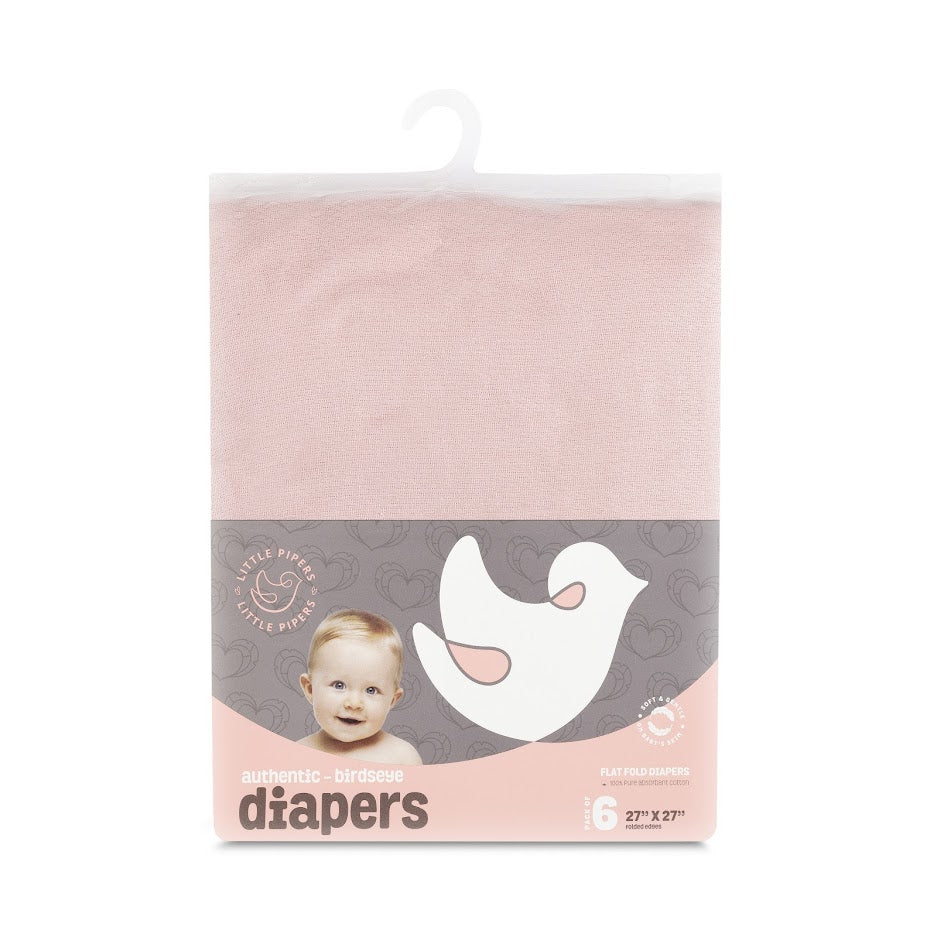 LITTLE PIPERS BIRDEYE FLATFOLD DIAPERS – 6 PACK – MAUVE