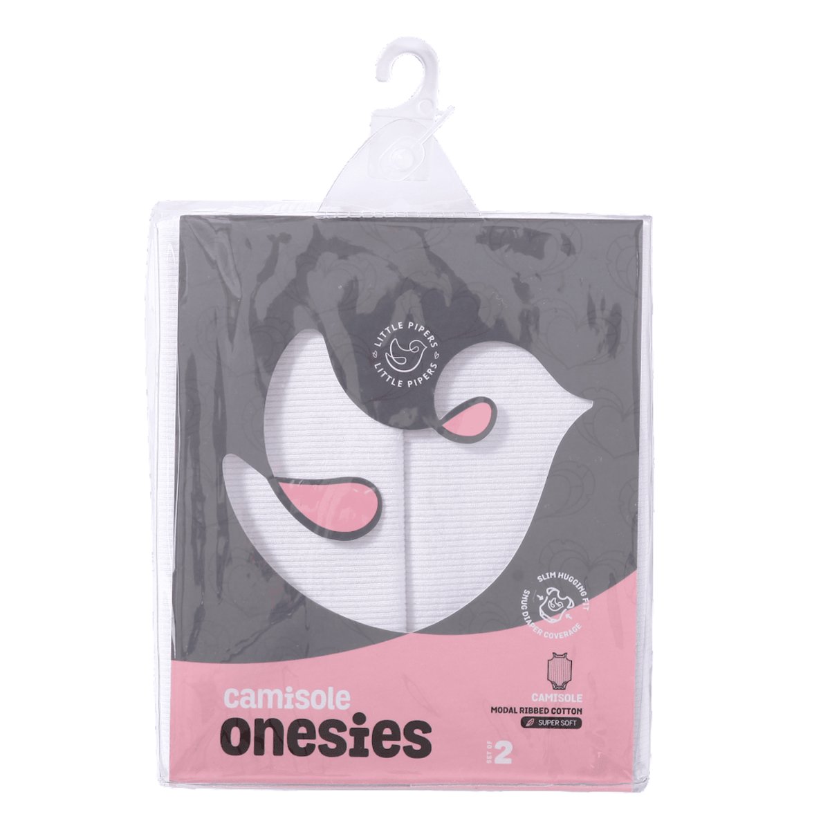 LITTLE PIPERS BABY RIBBED BODYSUITS – 0-3 MONTHS, WHITE, CAMISOLE – 2 PACK