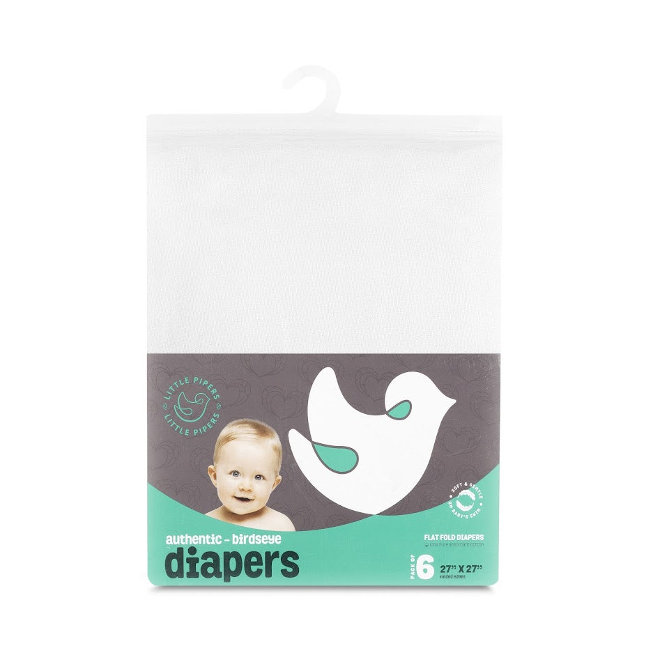LITTLE PIPERS BIRDEYE FLATFOLD DIAPERS – 6 PACK – WHITE