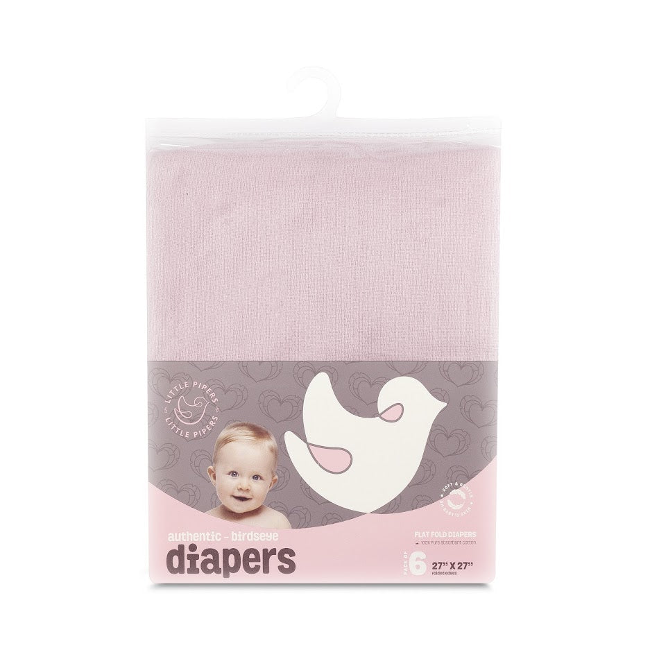 LITTLE PIPERS BIRDEYE FLATFOLD DIAPERS – 6 PACK – PINK