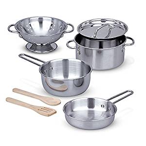 Melissa & Doug Stainless Steel Pots And Pans Pretend Play Kitchen Set