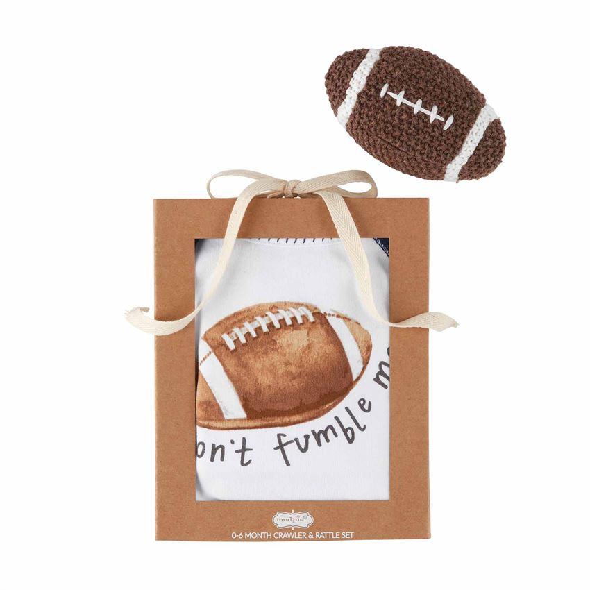 MUD PIE MUD PIE FOOTBALL KNIT RATTLE GIFT SET