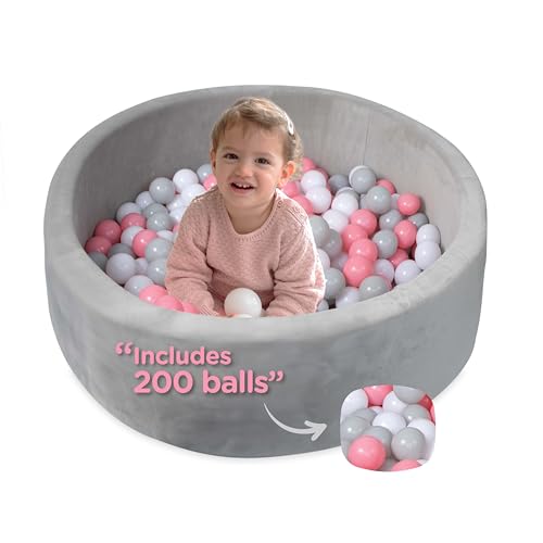 New Nuby Velvet Soft Play Foam Ball Pits (Pink & Gray)