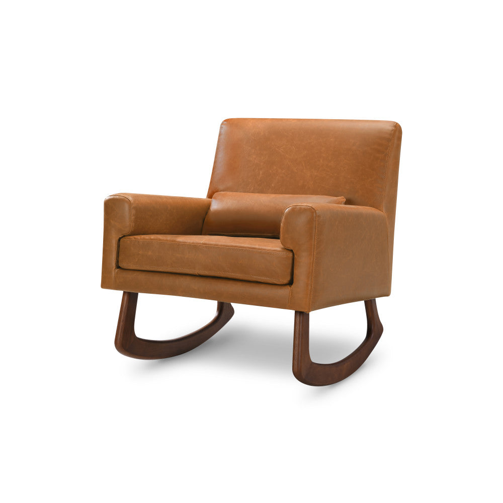 NURSERY WORKS SLEEPYTIME ROCKER – TAN LEATHER W/ WALNUT LEGS