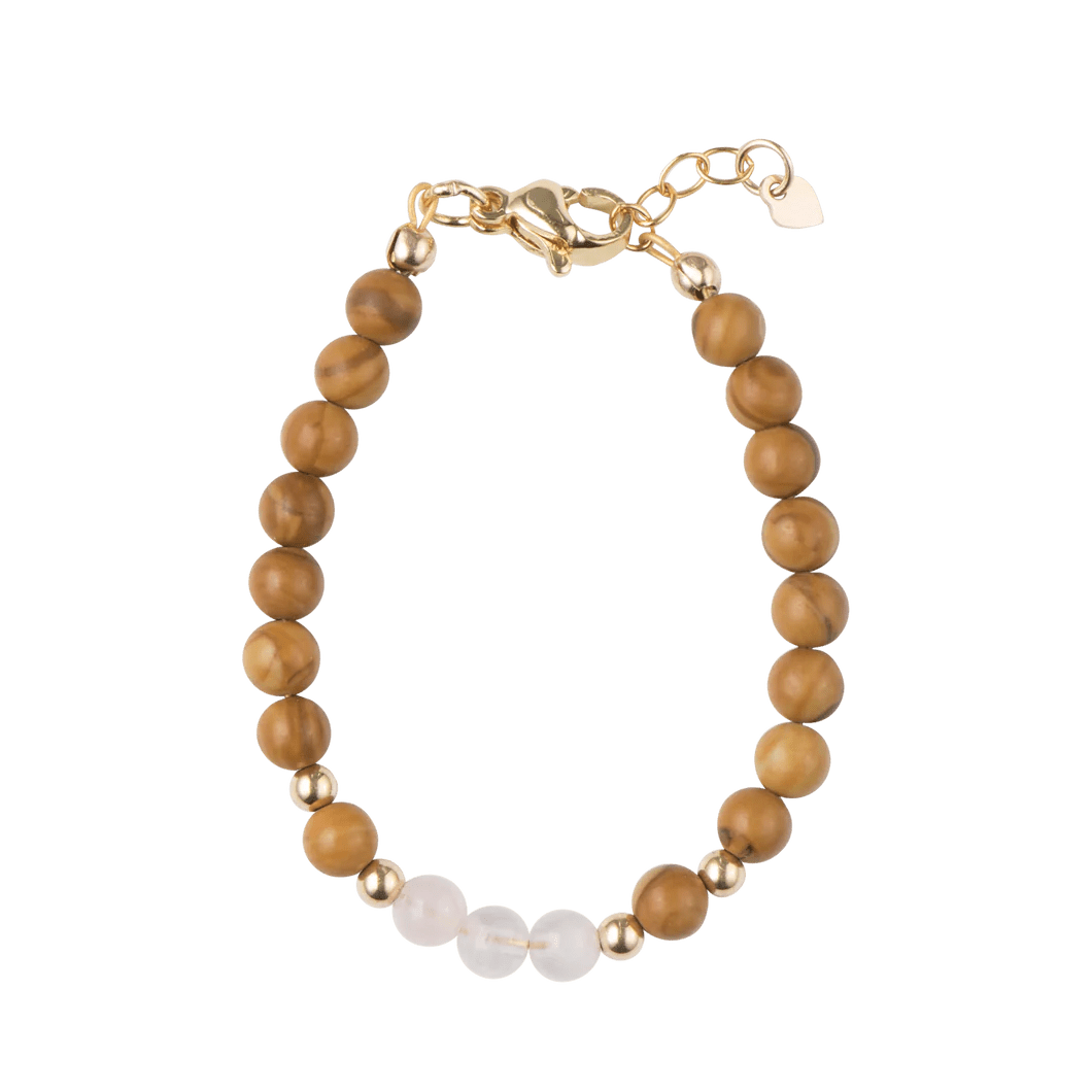 PICKY WOOD GRAIN STONE WITH ROSE BEADS BRACELET