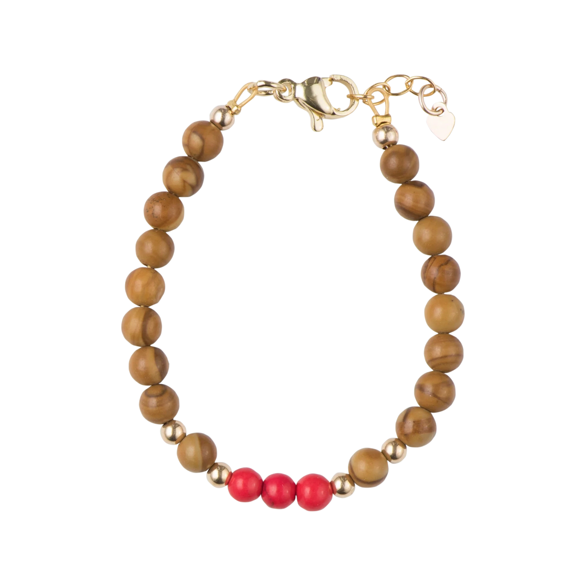 PICKY WOOD GRAIN STONE WITH RED BEADS BRACELET