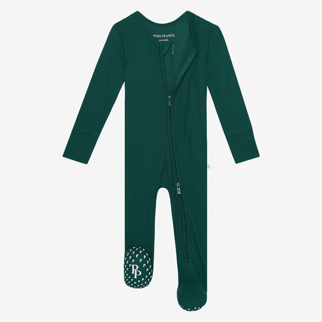 Posh Peanut Footie Zippered One Piece | Hunter Green Waffle