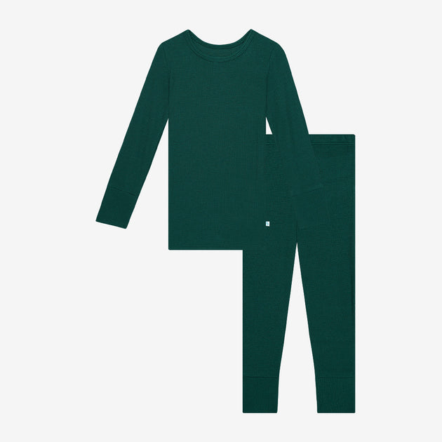 Posh Peanut Long Sleeve Basic Pajamas | Hunter Green Waffle