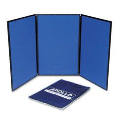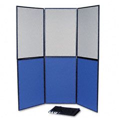 Quartet® ShowIt Three-Panel Display System, Fabric, Blue/Gray, Black PVC Frame QRTSB93513Q