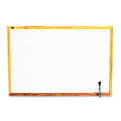 Quartet® Standard Dry-Erase Board, Melamine, 36 x 24, White, Oak Finish Wood Frame QRTS573