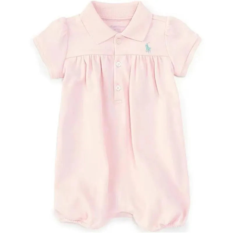 Polo Ralph Lauren Baby – Girl Short Sleeve Interlock Romper, Pink – 12M