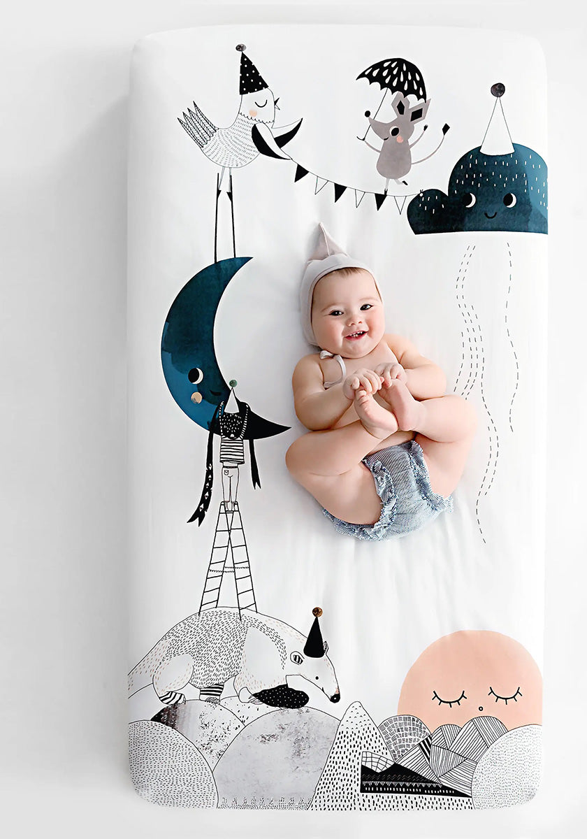 Rookie Humans Cotton Sateen Crib Sheet – The Moon’s Birthday
