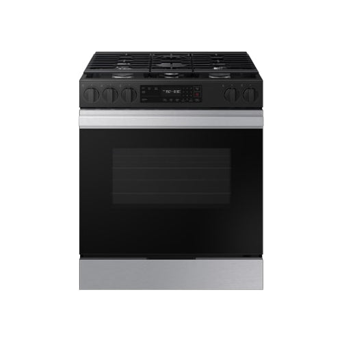 Samsung BESPOKE NSG6DG8100SR 30 Inch Smart Slide-In Gas Range with 5 Sealed Burners, 6.0 cu. ft. Capacity, Precision Knobs, Glass Touch Controls, 17K BTU Power Burner, Storage Drawer, Self-Clean, Sabbath Mode, and ADA Compliant: Stainless Steel