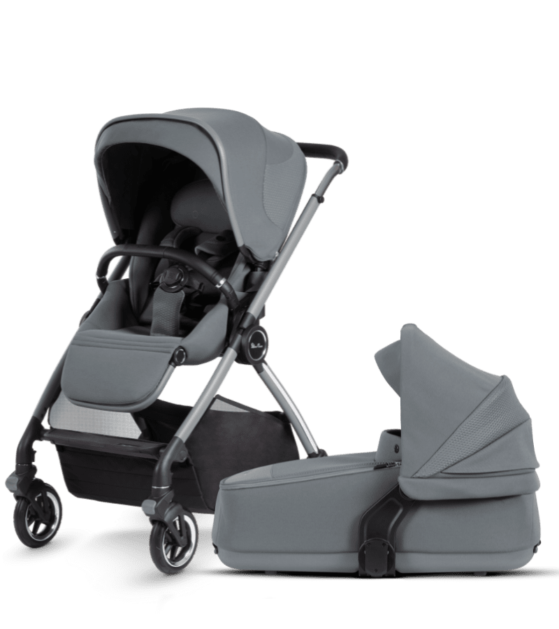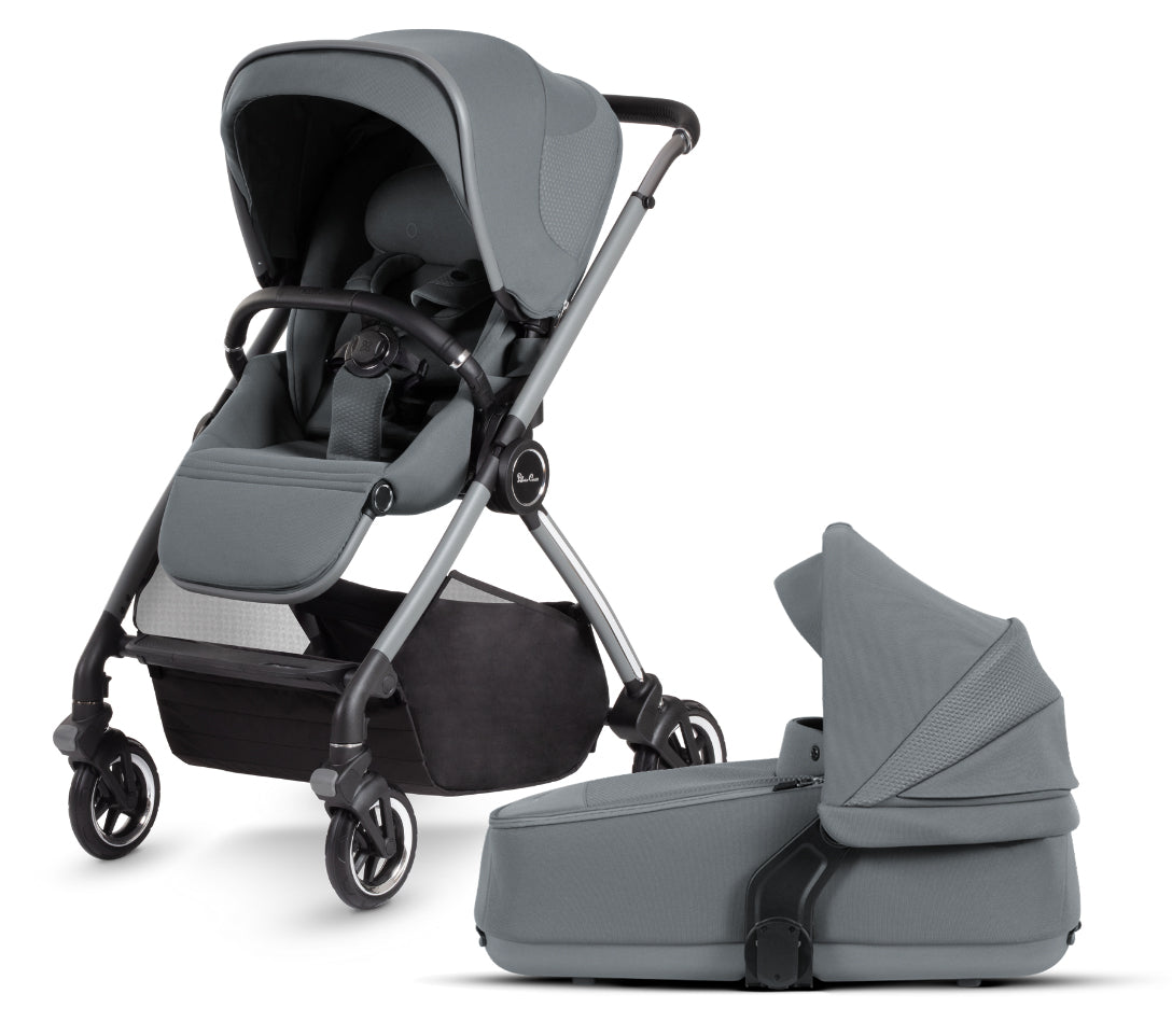 SILVER CROSS DUNE STROLLER + COMPACT BASSINET – GLACIER GRAY