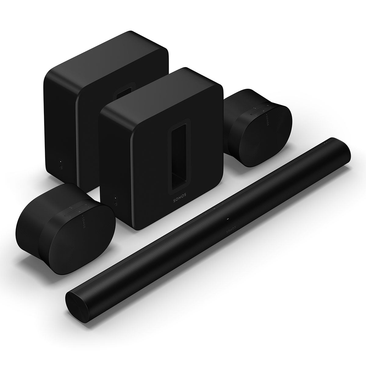 Sonos Ultimate Home Theater Set with Arc Wireless Soundbar, Pair of Sub Wireless Subwoofer (Gen 3), and Pair of Era 300 Wireless Smart Speakers (Black)
