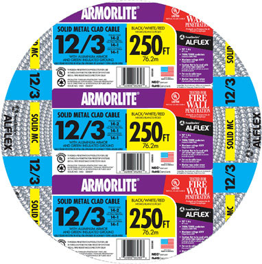 Southwire 250 ft. 12/3 Aluminum Armored MC Cable Black/White/Green/Red